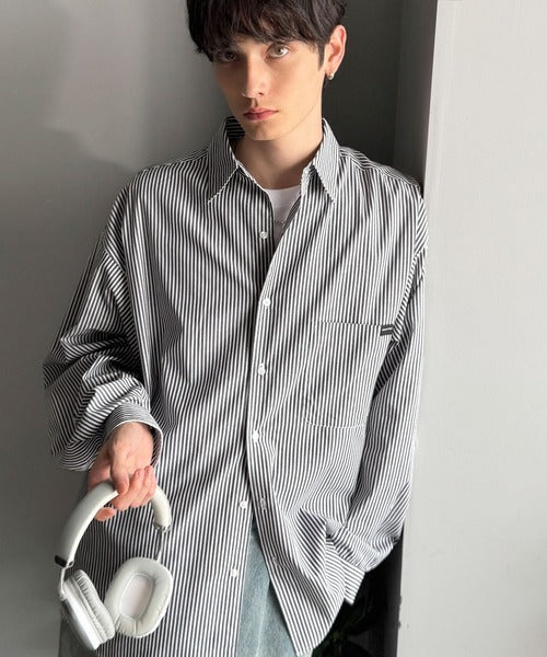 肩落ちシルエットと程よいハリ感が魅力のビッグシャツ。