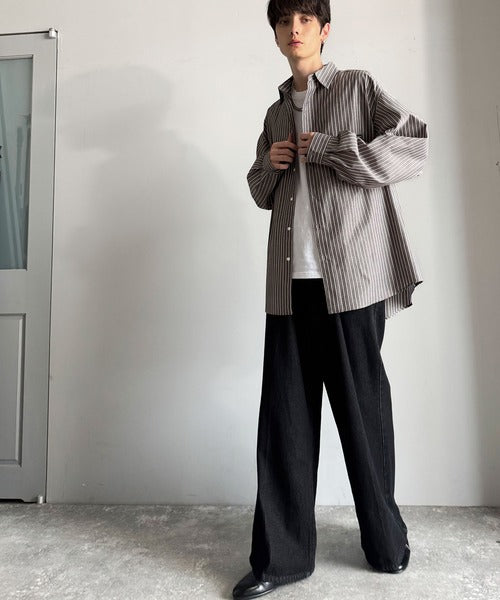 ドロップショルダーとワイドな身幅で、羽織るだけでリラックス感のある着こなしが完成。