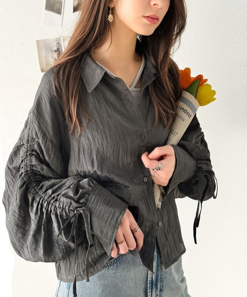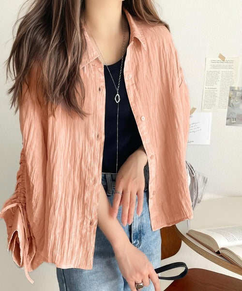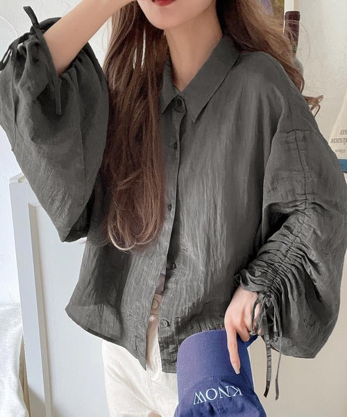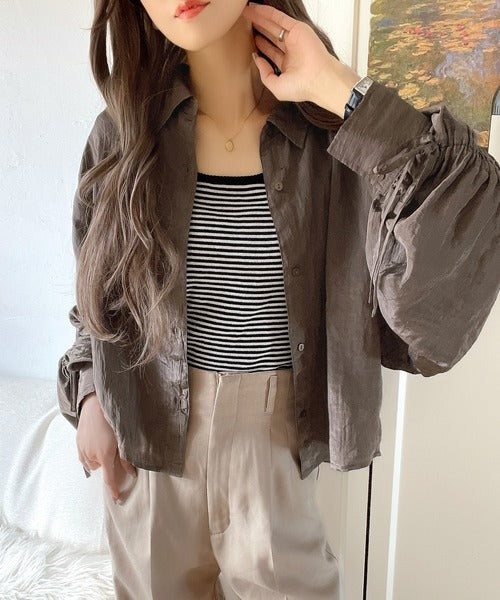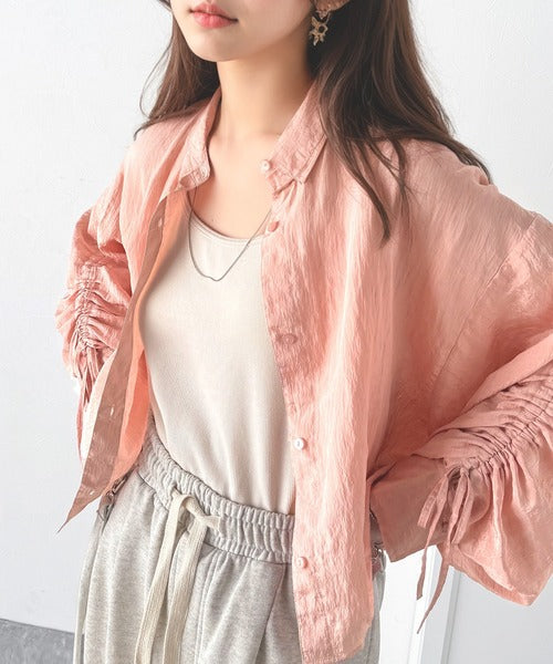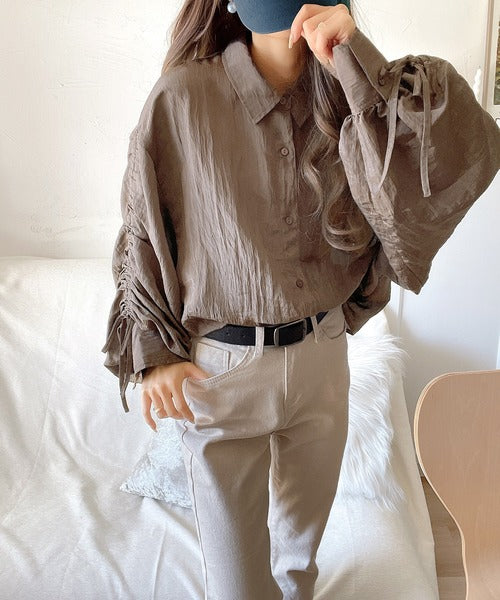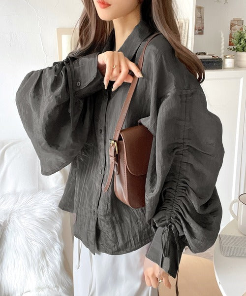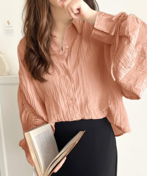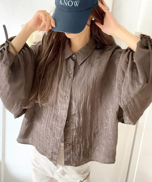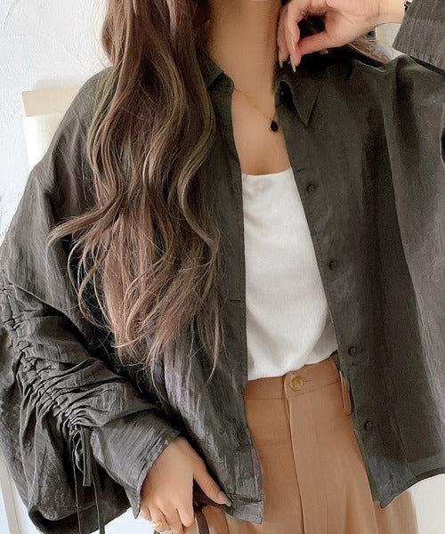 上品な抜け感と自由なアレンジ叶う。2wayカラー袖シャーリングシアー素材シャツブラウス(長袖) ce1010342