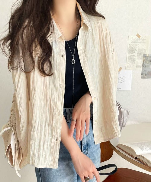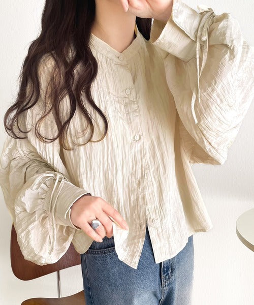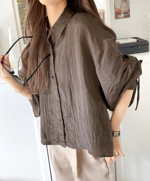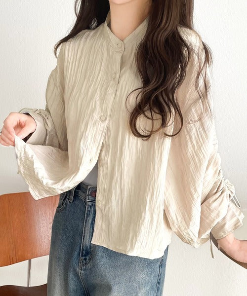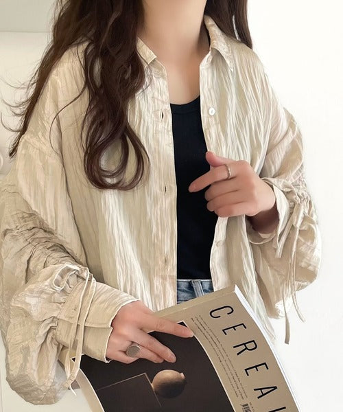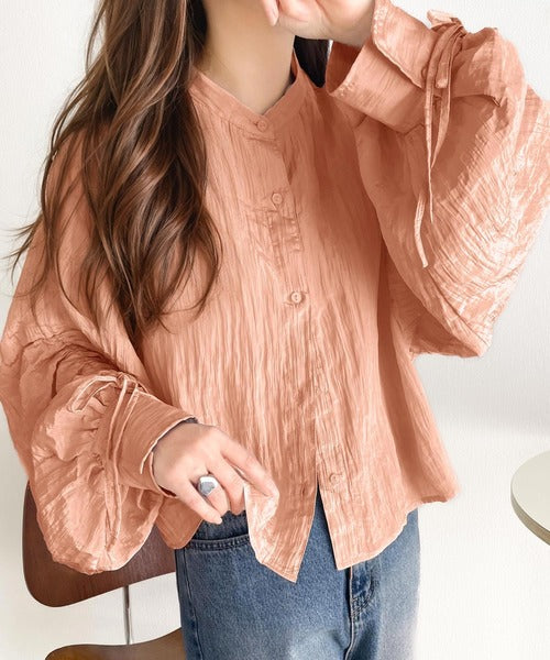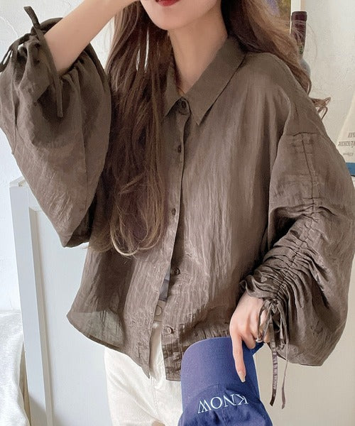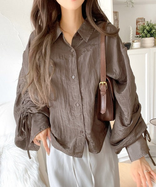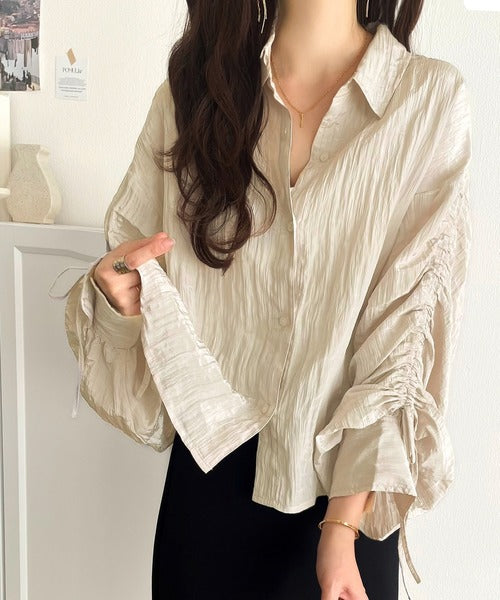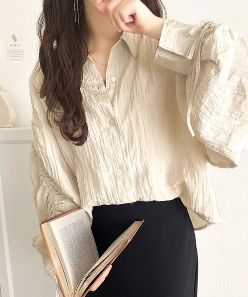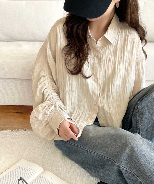 上品な抜け感と自由なアレンジ叶う。2wayカラー袖シャーリングシアー素材シャツブラウス(長袖) ce1010342