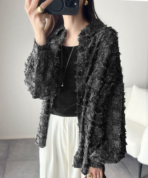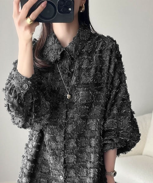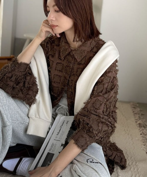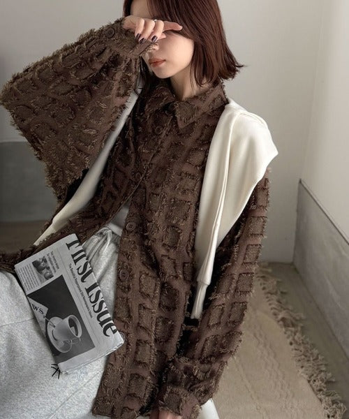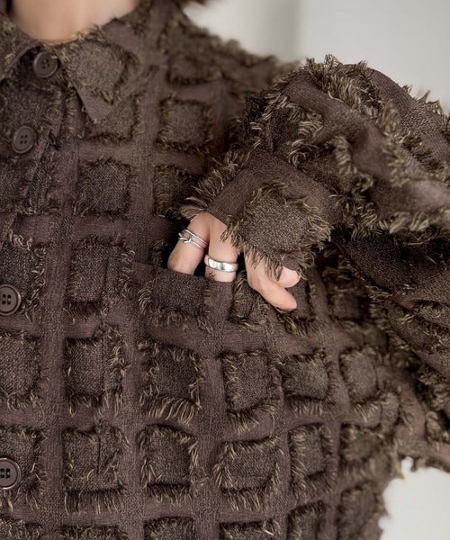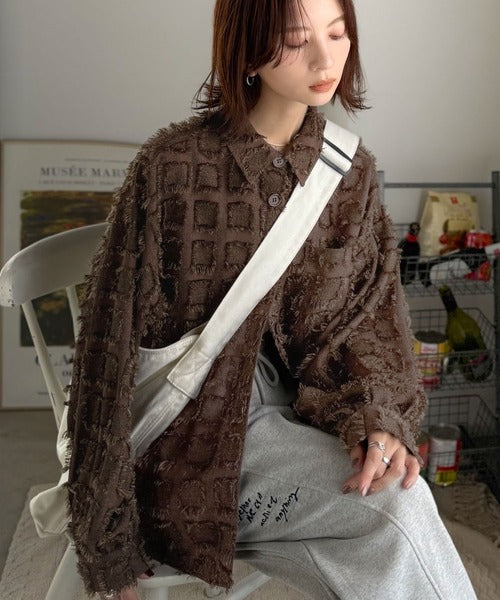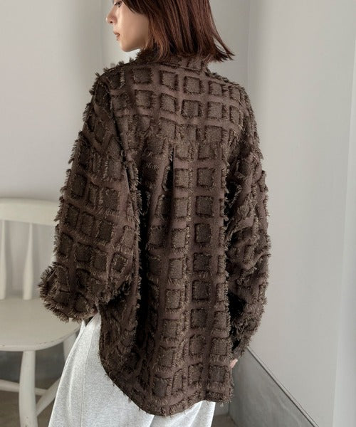 「いつもの羽織」のスパイスに。立体チェックで周りと差がつく一着。フリンジチェックジャガードシャツ(長袖) ce1010503