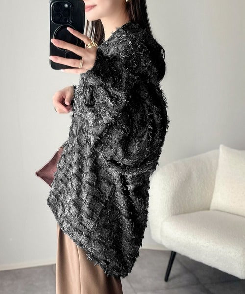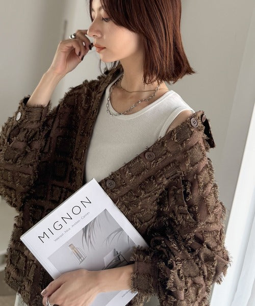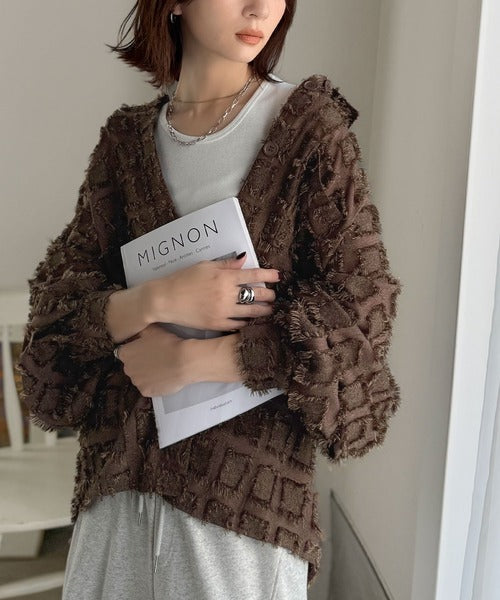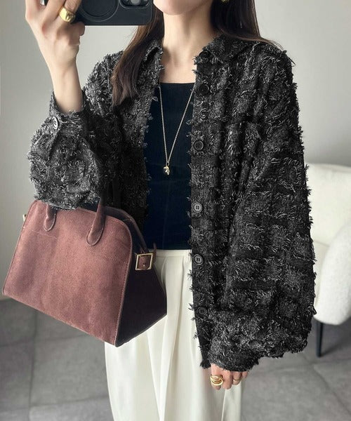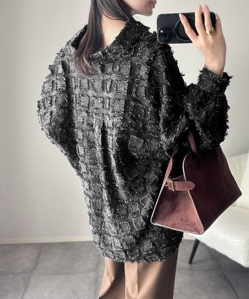 立体チェックが可愛いフリンジジャガード素材