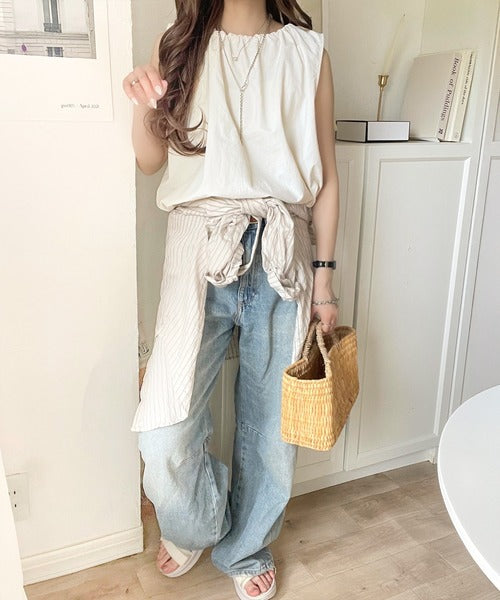 サラッとした素材でTシャツやブラウスにレイヤードも◎