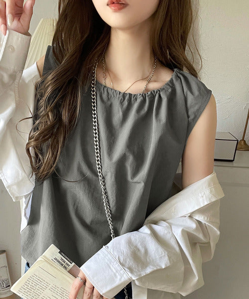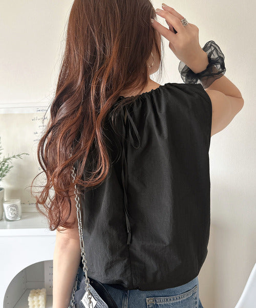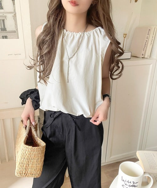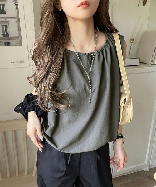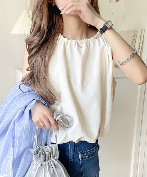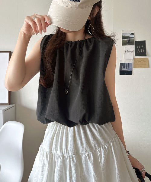 ボリュームのあるバルーンデザインが目を惹くノースリーブトップス。