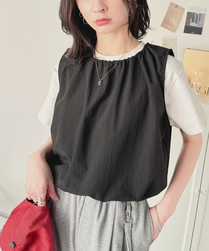 1枚でサマになる。ナイロンバルーンノースリーブブラウス(ショート丈) ce1020208