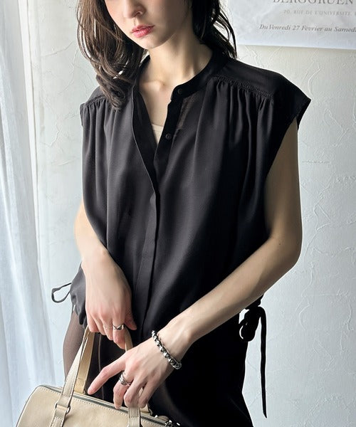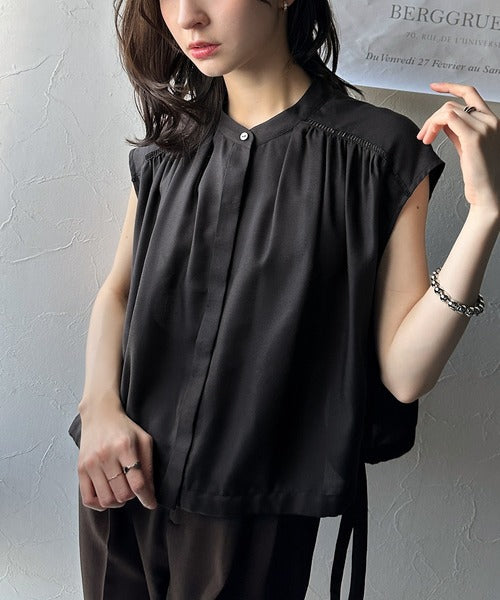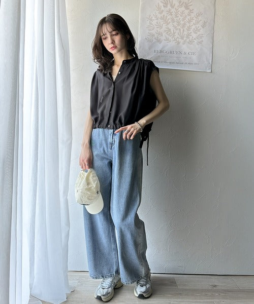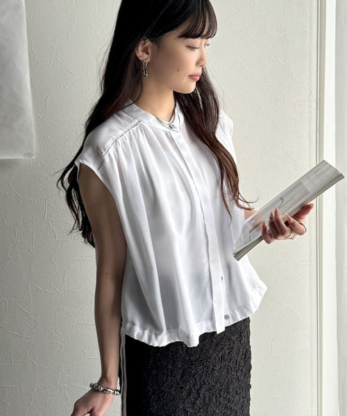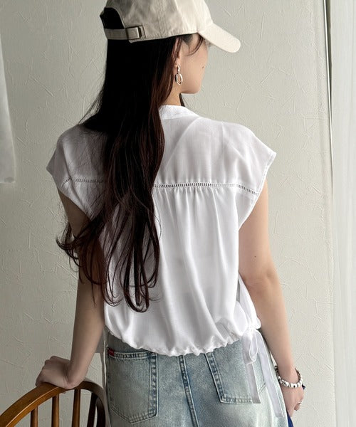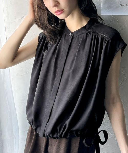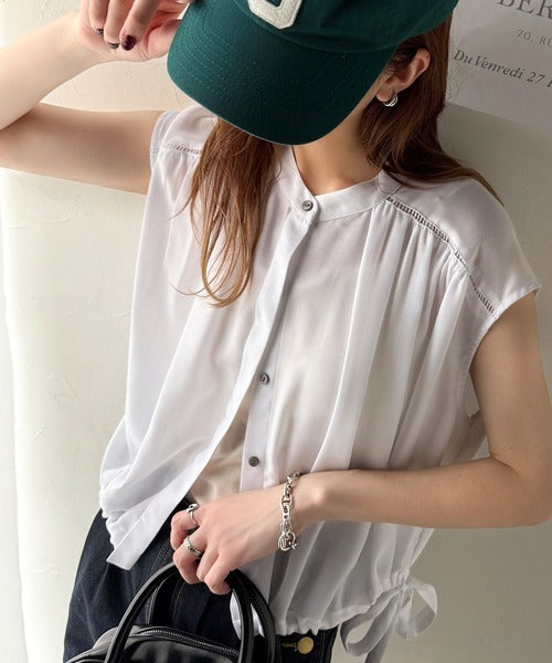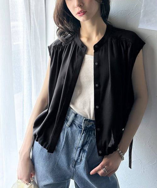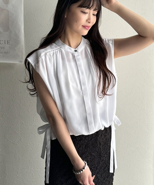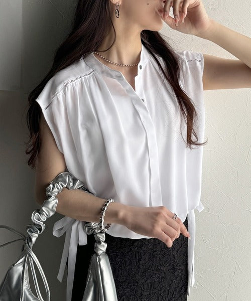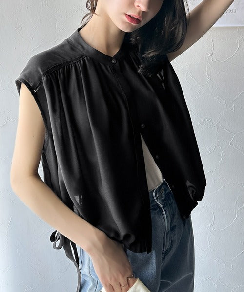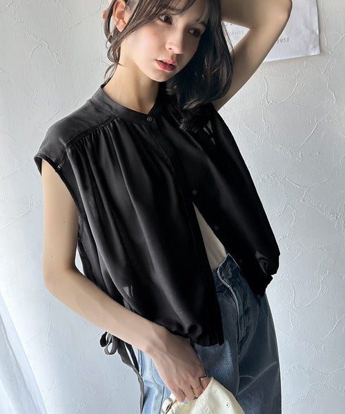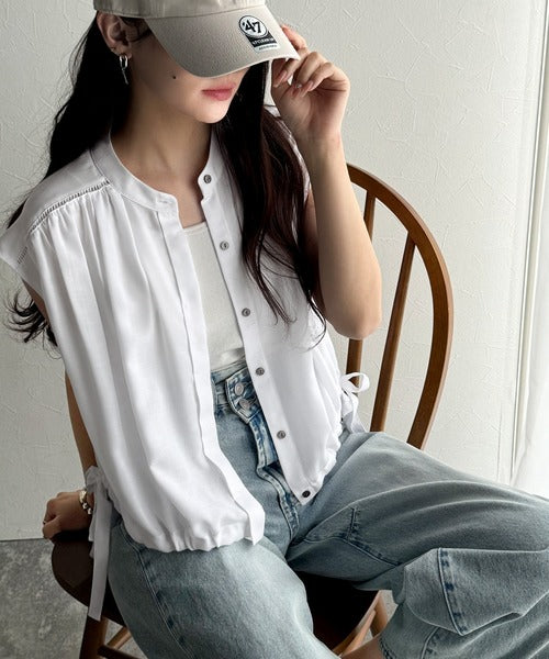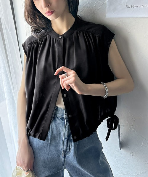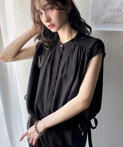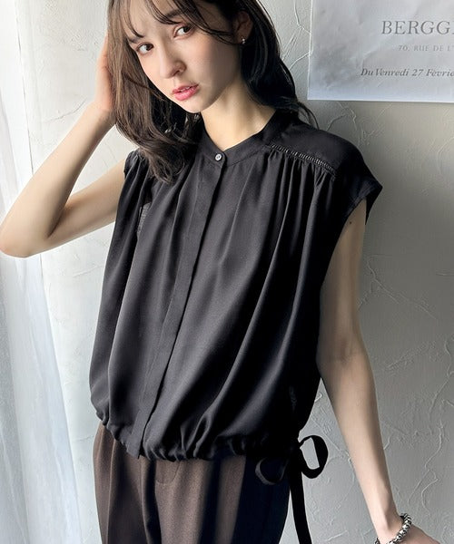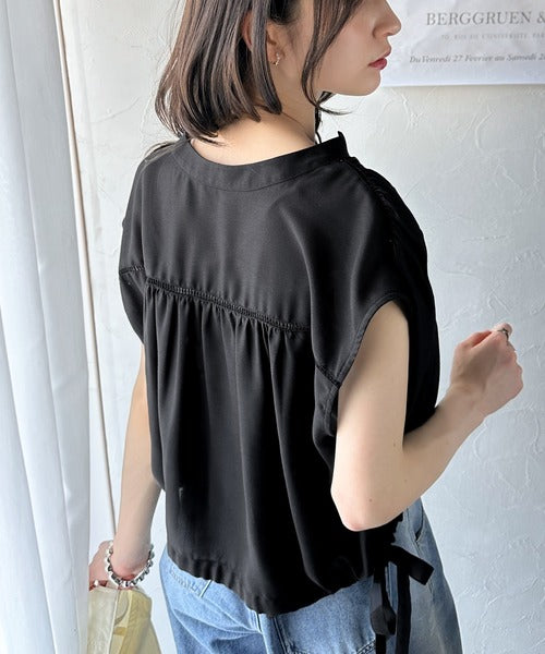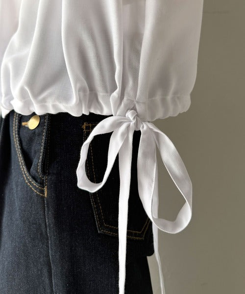清楚感に大人の甘さをプラス。リボンヘムクロップドギャザーブラウス(ショート丈) ce1070134
