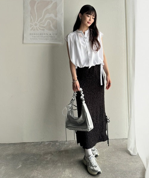 上品シンプルなデザインで清楚感もありながらギャザーを絞れば、