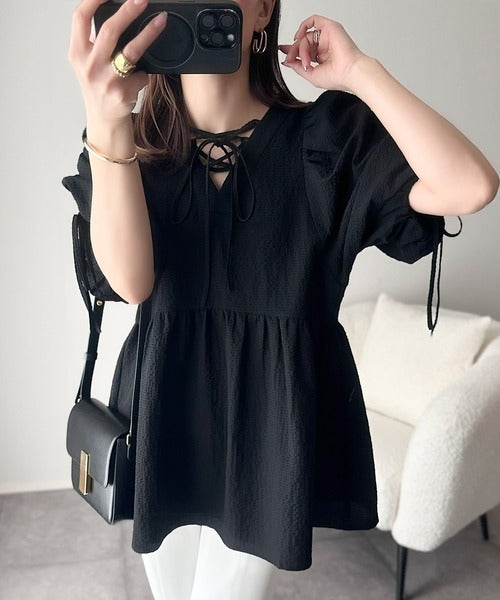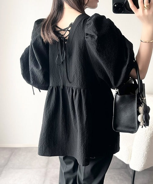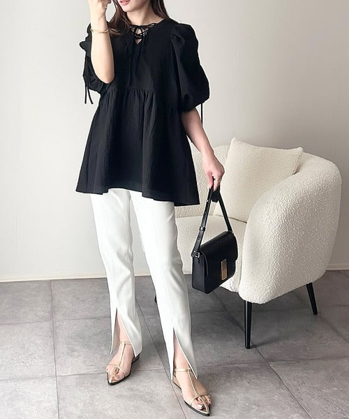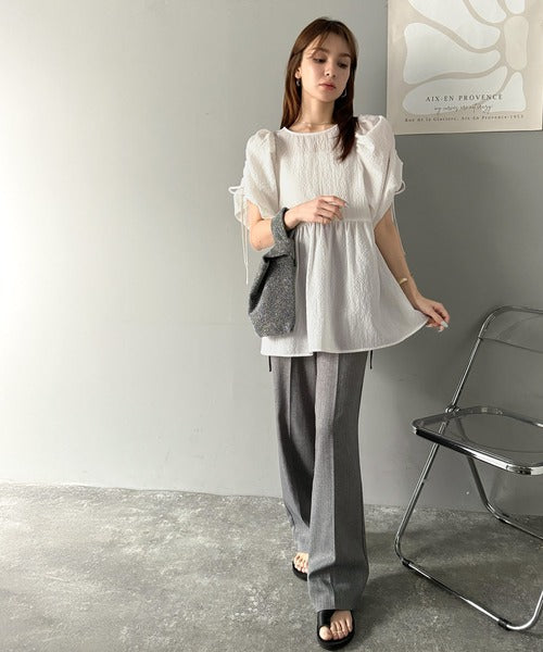 パフギャザーでふんわりとしたシルエットが特徴のこのブラウス。