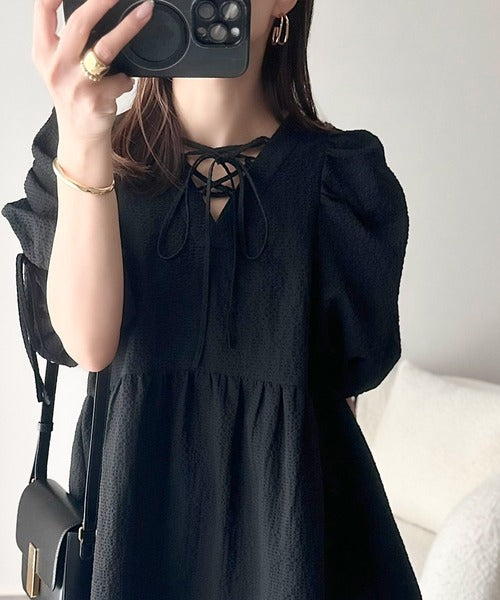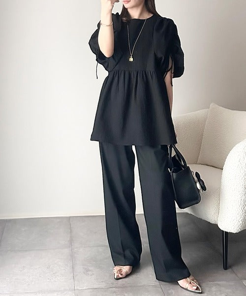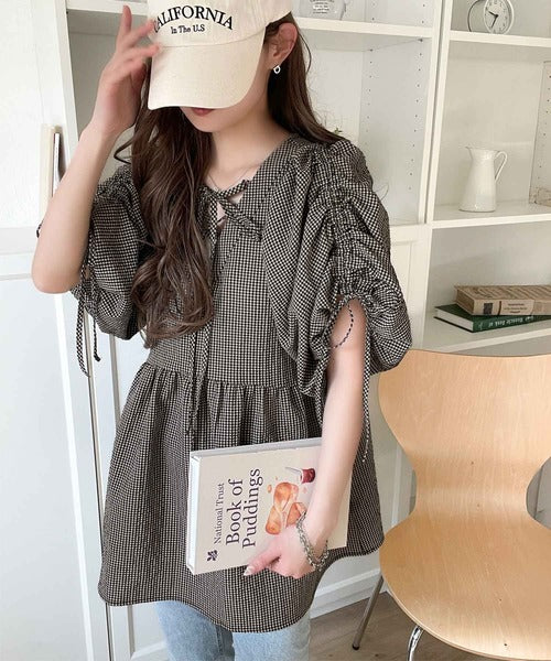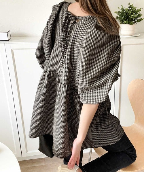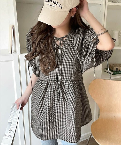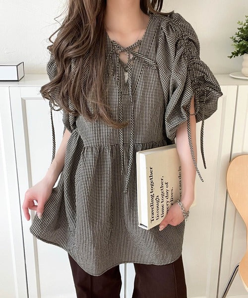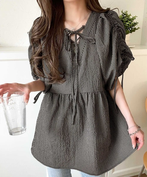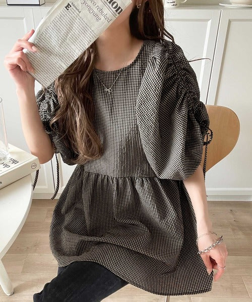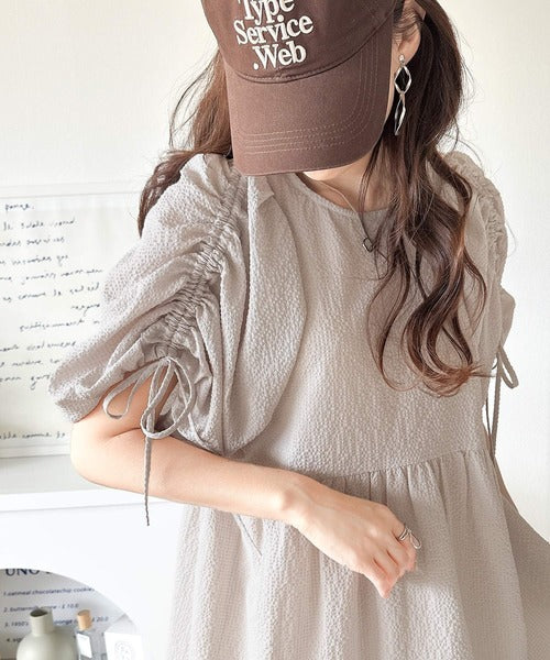 軽やかで上品。シアサッカー前後2WAYギャザーパフスリーブチュニックブラウス ce1070143