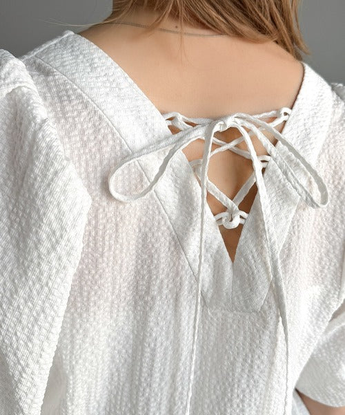 前後2WAY仕様でレースアップを後ろにして着ることで、