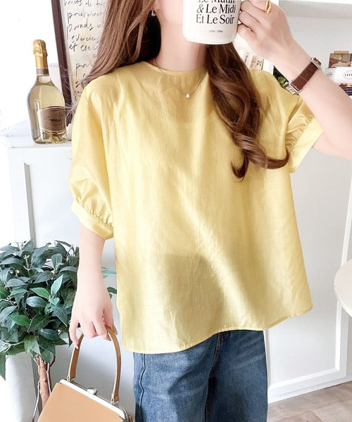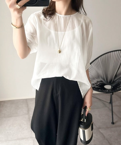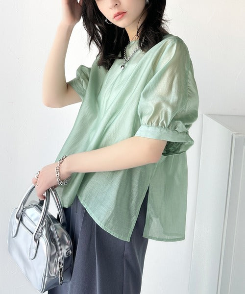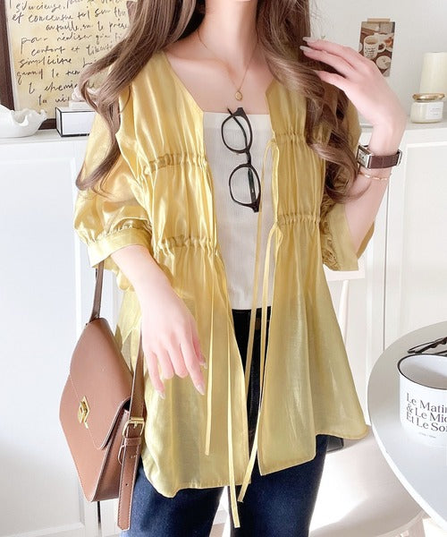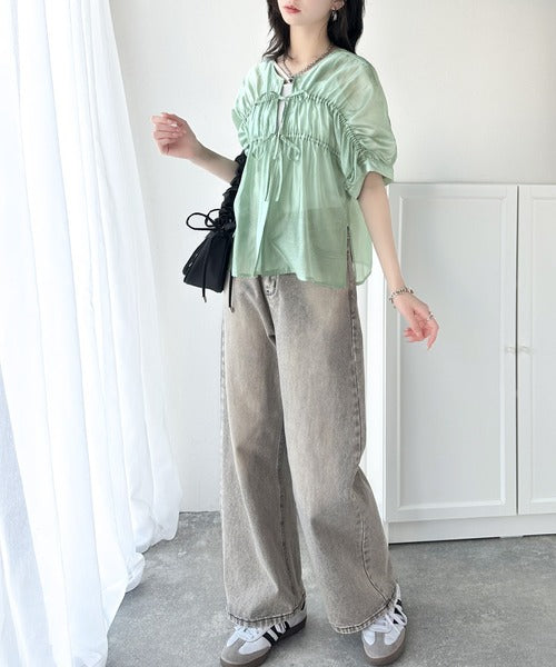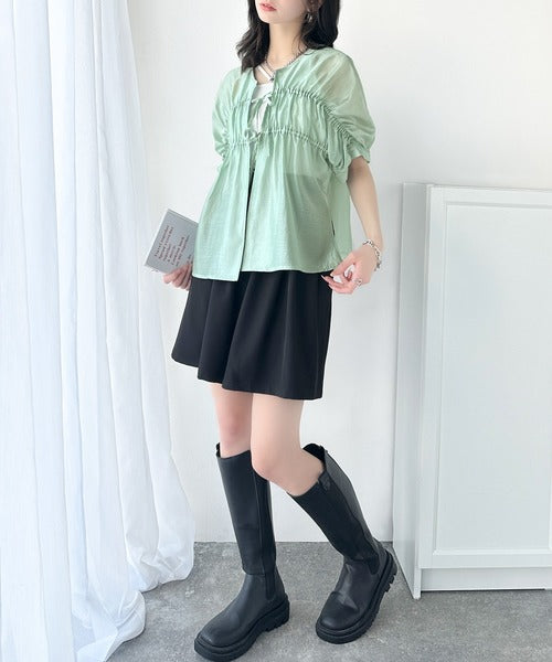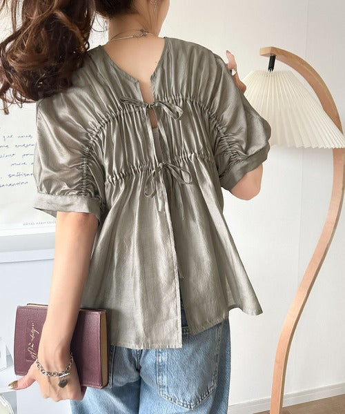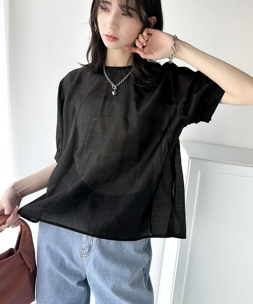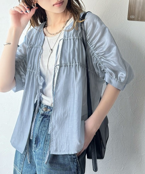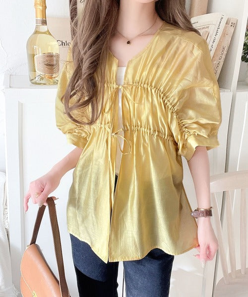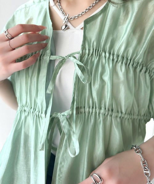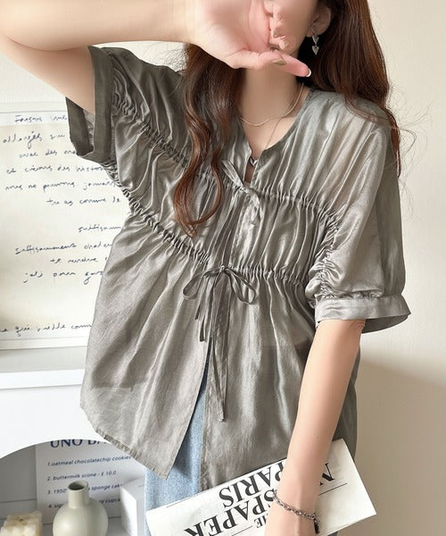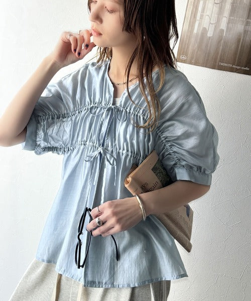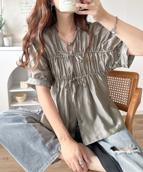 高級感漂う春夏の必需品!前後2WAYギャザーリボンシアーブラウス(半袖) ce1110097