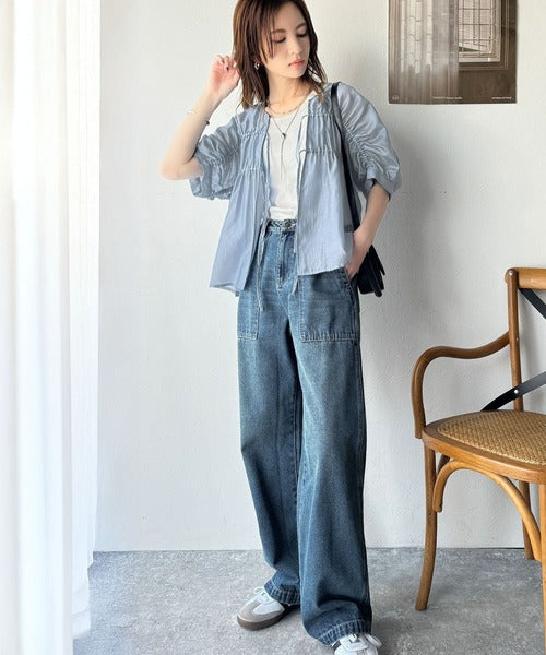 胸元にはゴムを施し、立体的なギャザーをキープ。