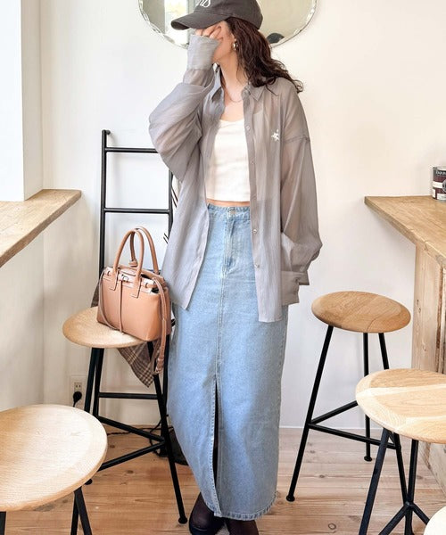 今季トレンドのシアー素材とゆるっとしたシルエットがこなれ感のあるシアーシャツ。