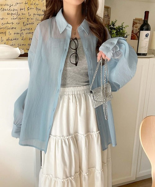 女性らしさもカジュアルさも叶うシアーシャツ。