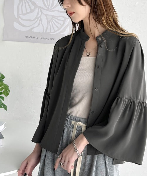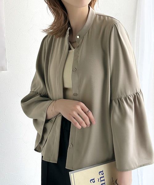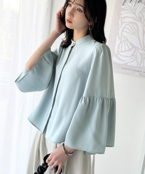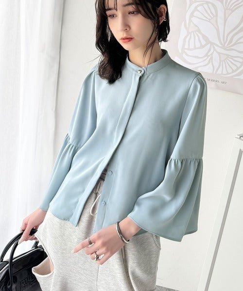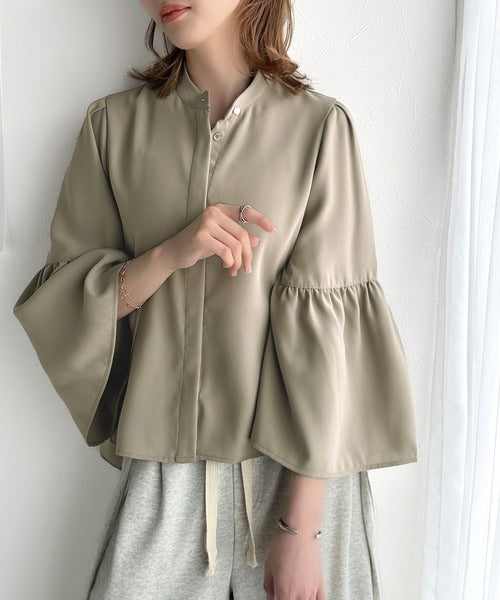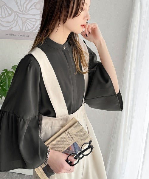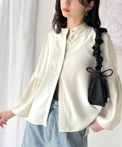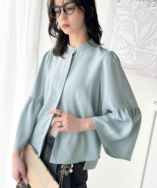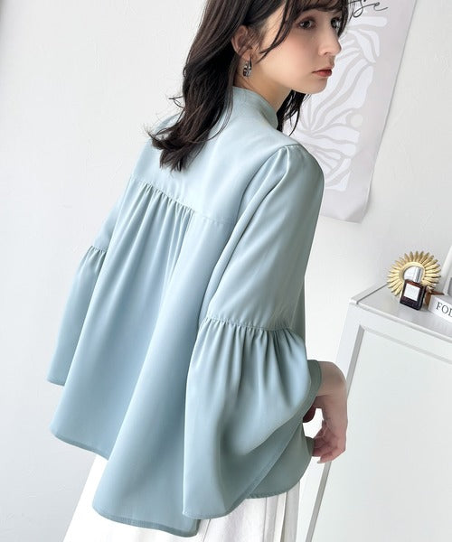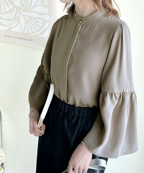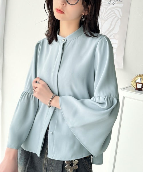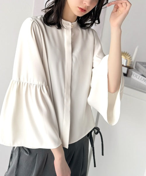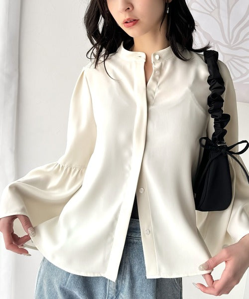 360度可愛い♪フレアスリーブバンドカラーブラウス(長袖) ce1110111