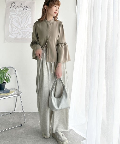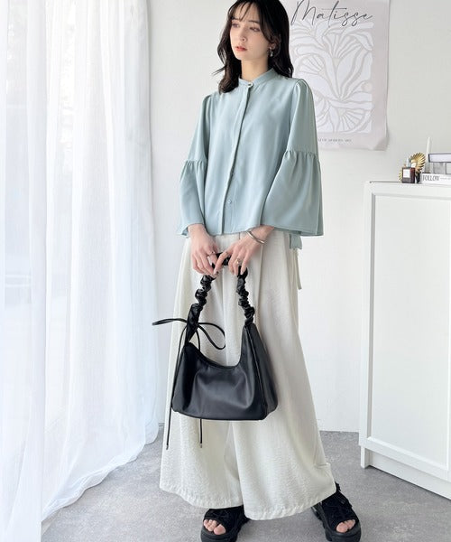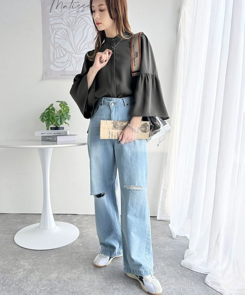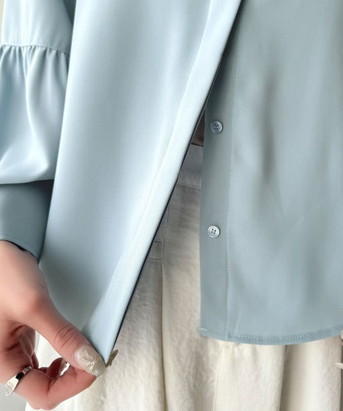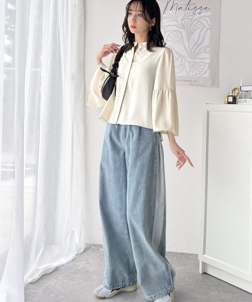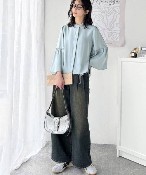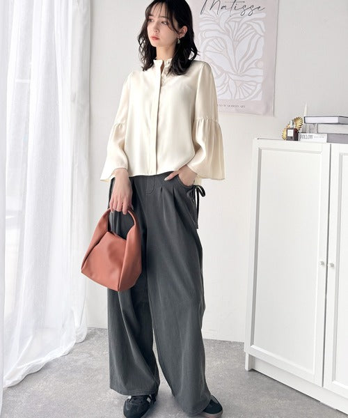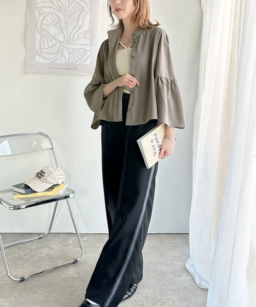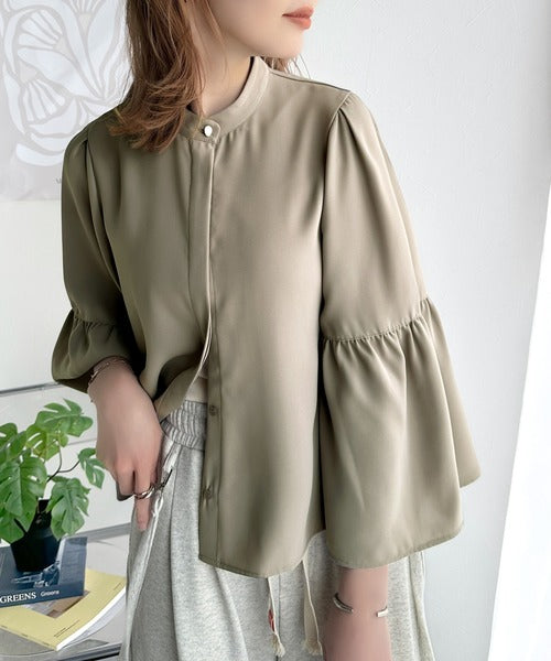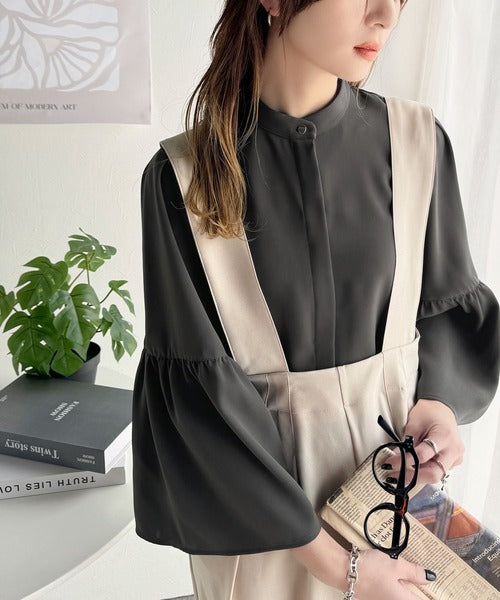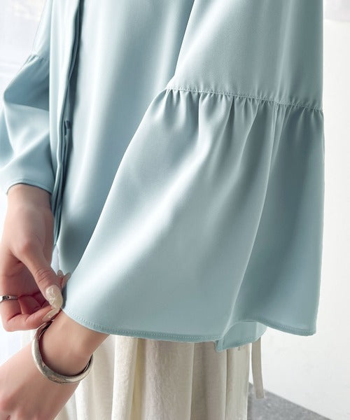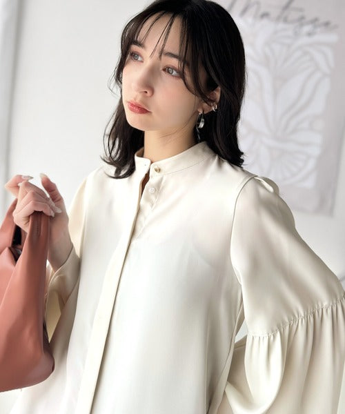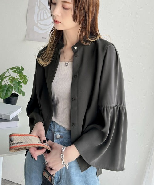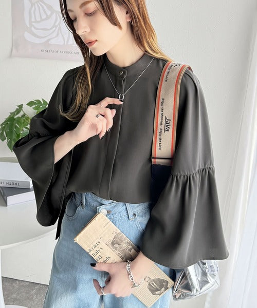 360度可愛い♪フレアスリーブバンドカラーブラウス(長袖) ce1110111