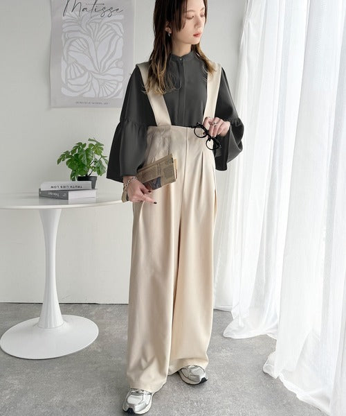 また、ブラウスをサスペンダータイプのワンピースやパンツの下に