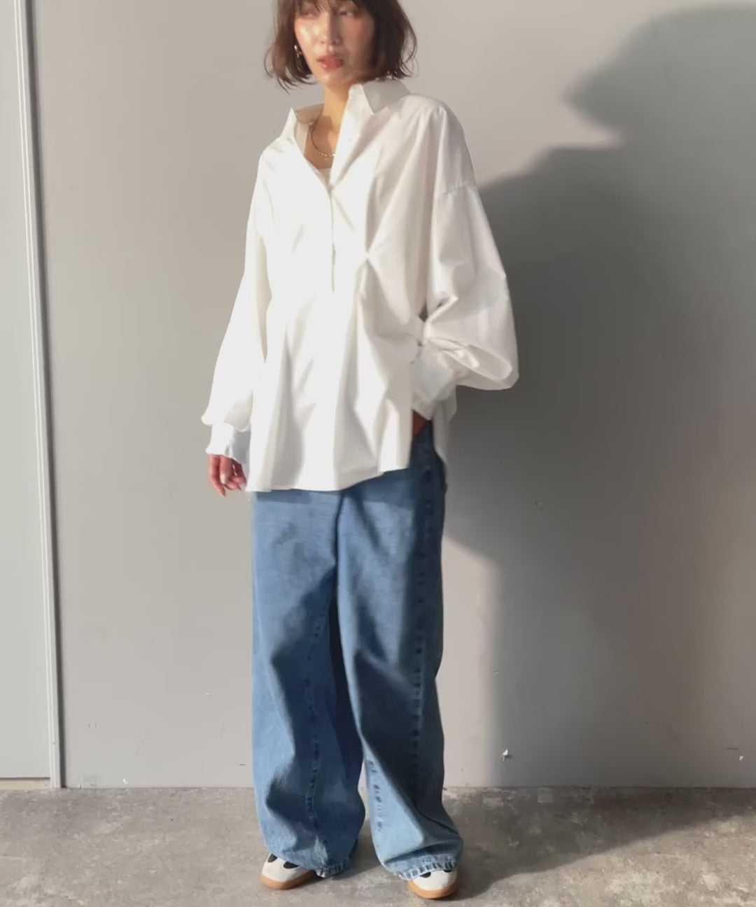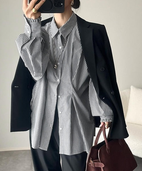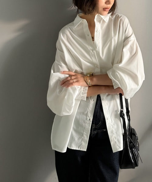 ウエストタック×袖フリルのバランスが絶妙な大人シャツ。