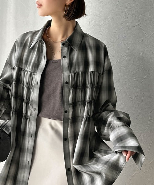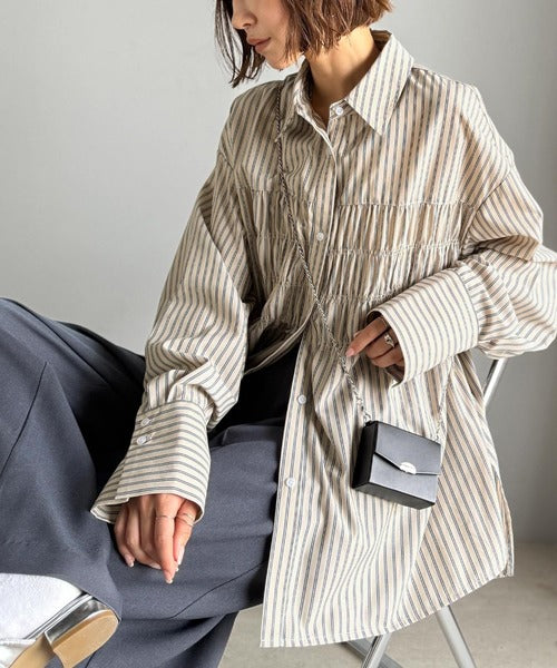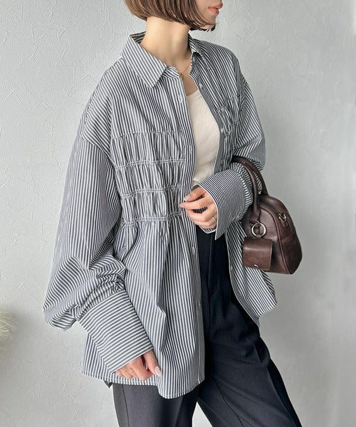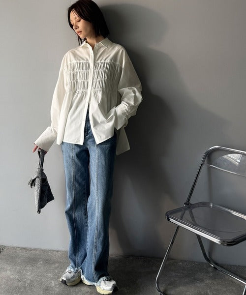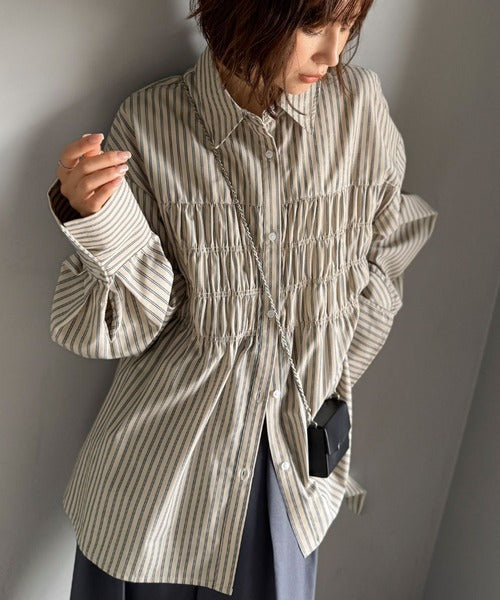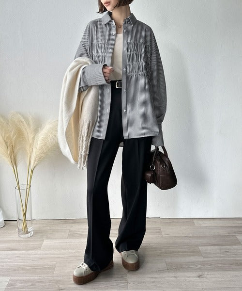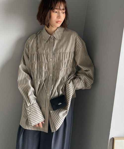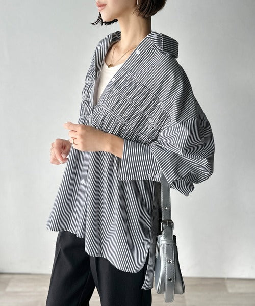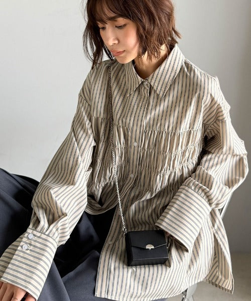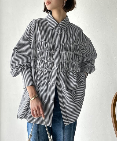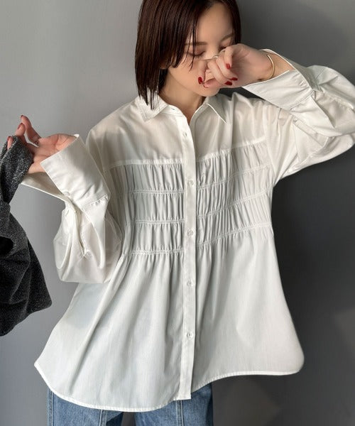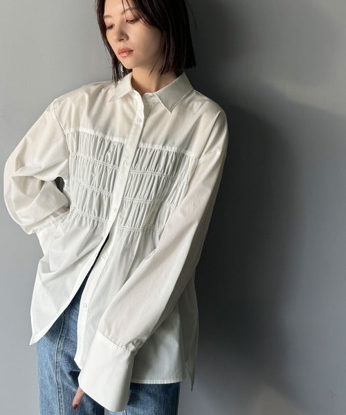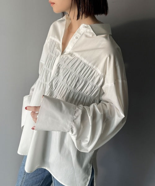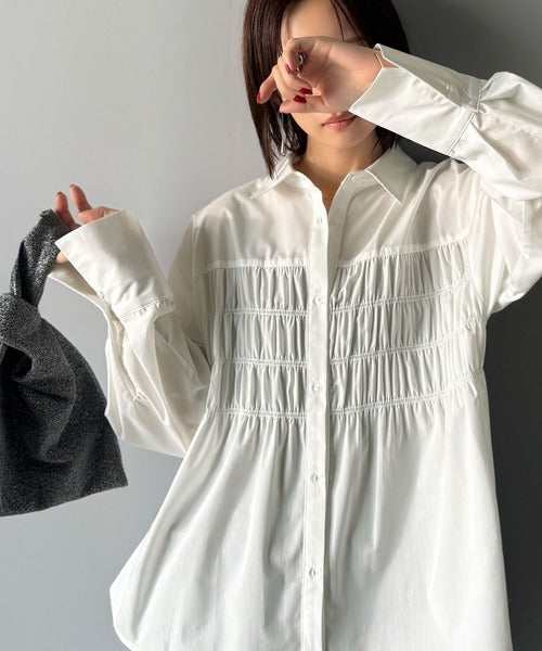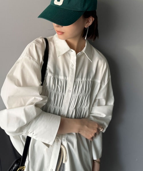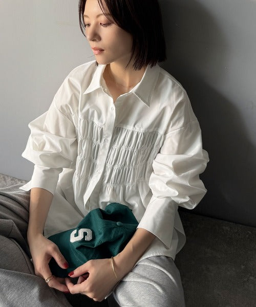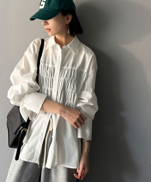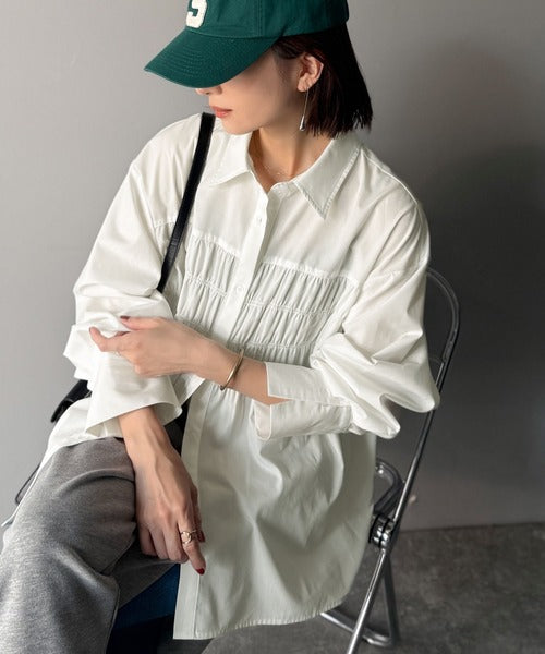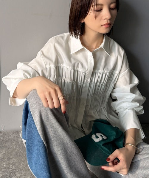 立体感を纏う。シャーリングビスチェ風ロングカフスビッグシャツ(長袖) ce1110129