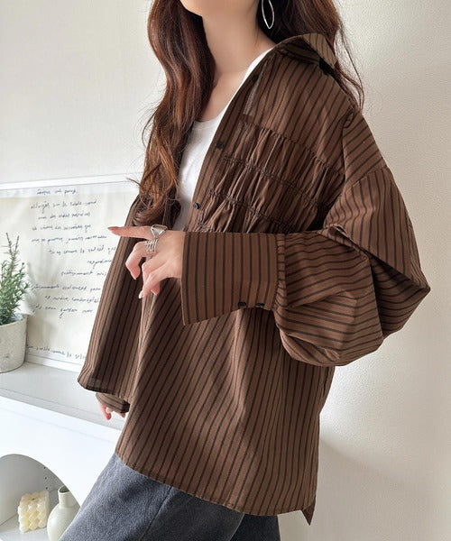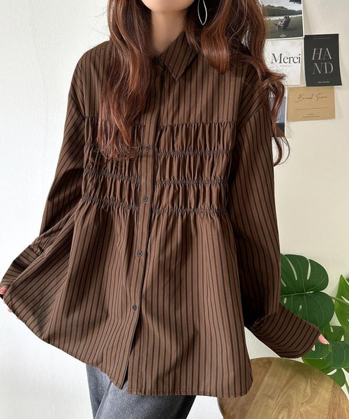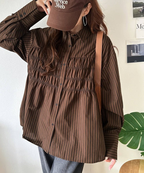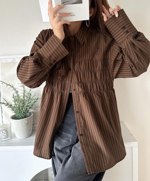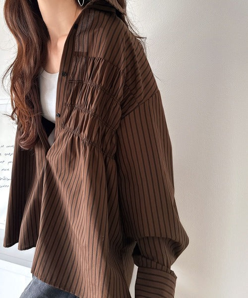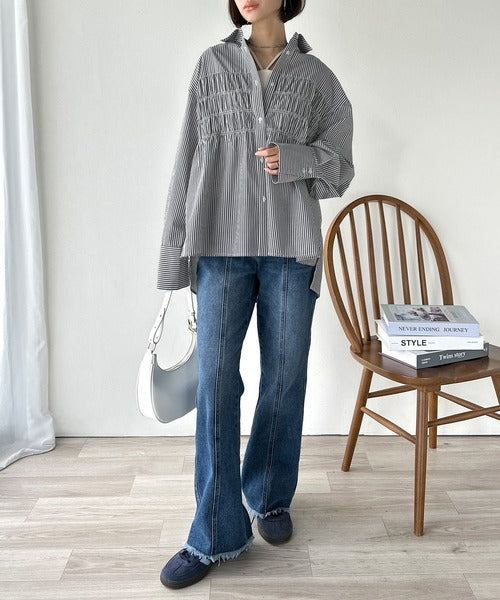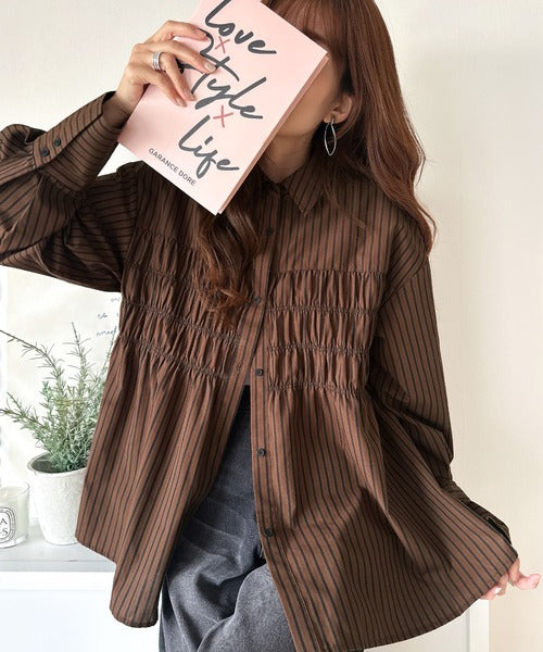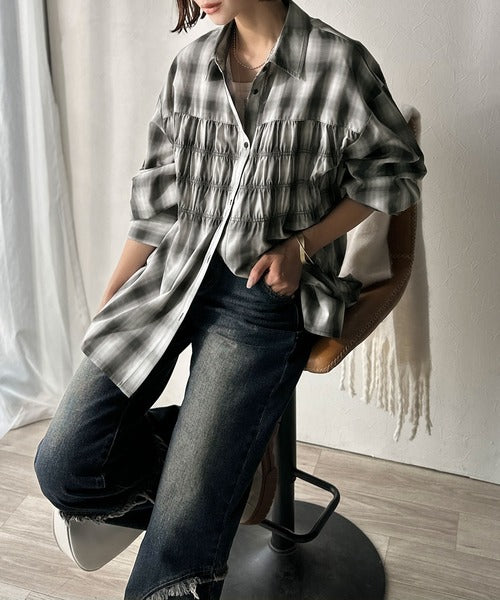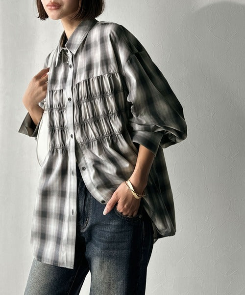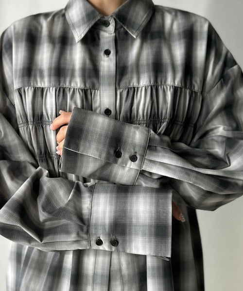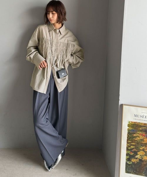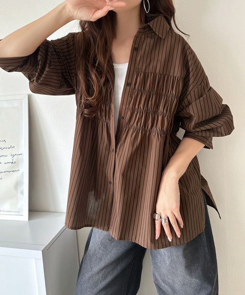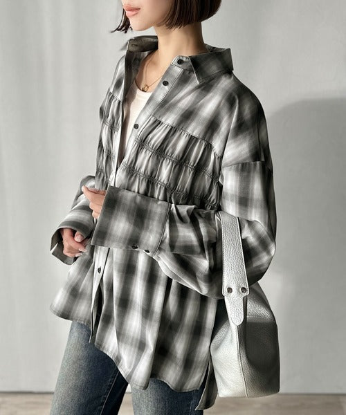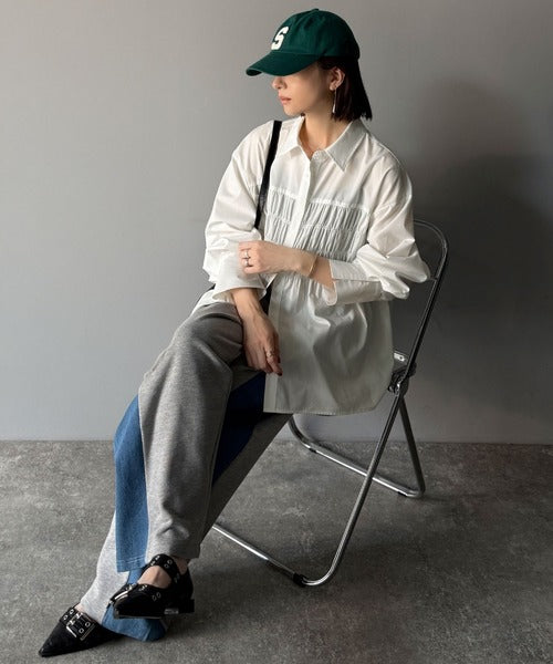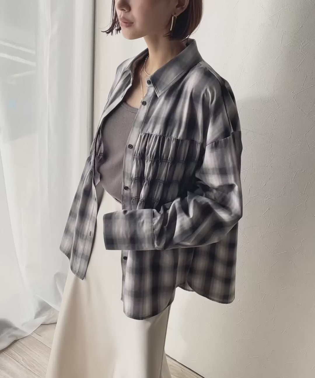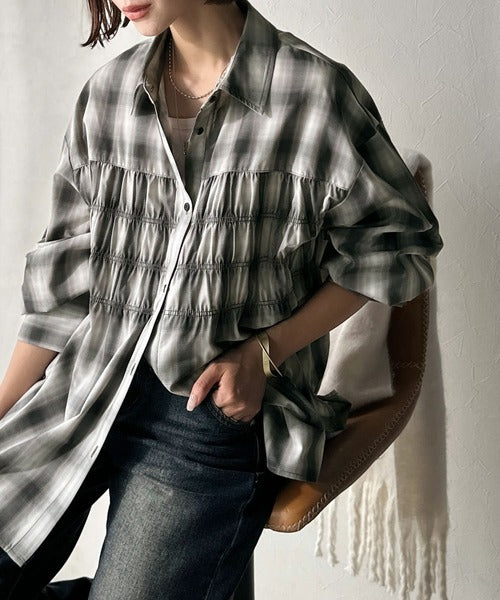 立体感を纏う。シャーリングビスチェ風ロングカフスビッグシャツ(長袖) ce1110129