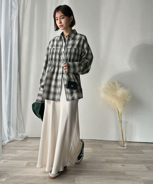 ウエスト部分のシャーリングが自然な立体感を生み出し、シルエットにメリハリをプラス。