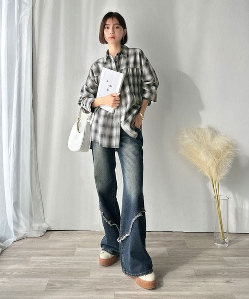 カジュアルコーデを楽しむならカーブデニムやフレアパンツ合わせるのがオススメ!