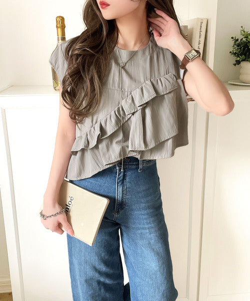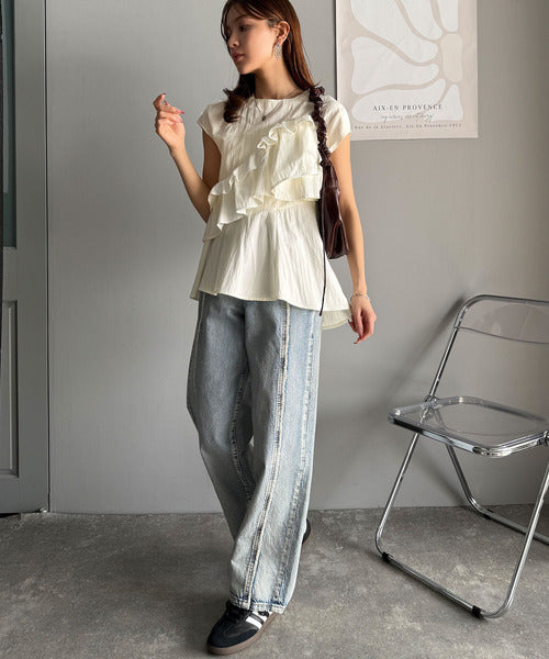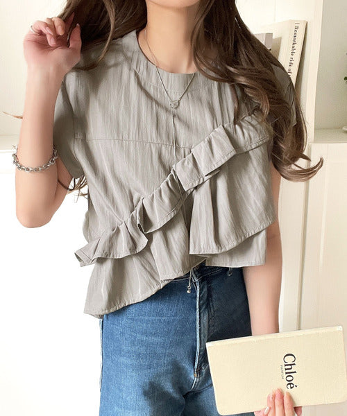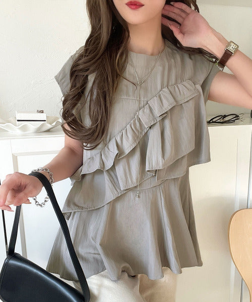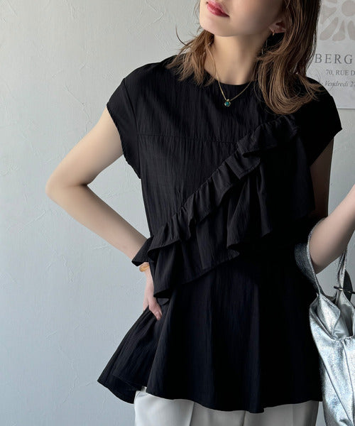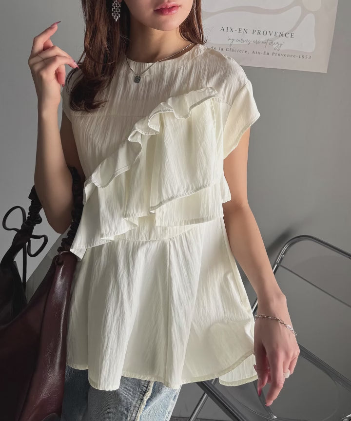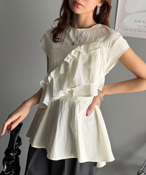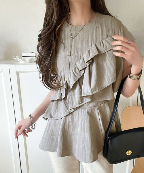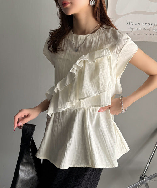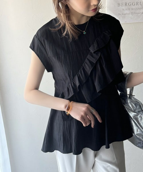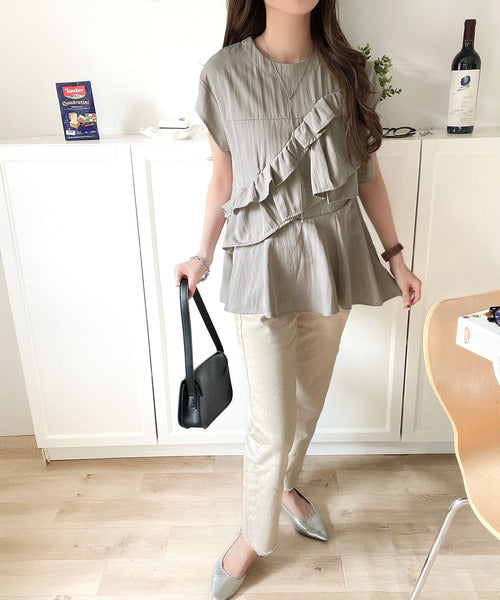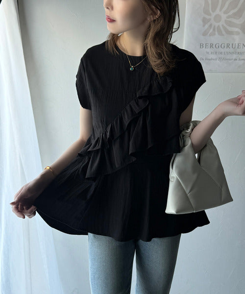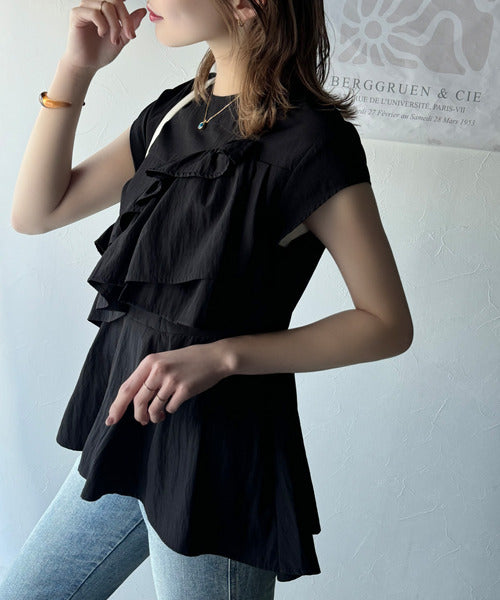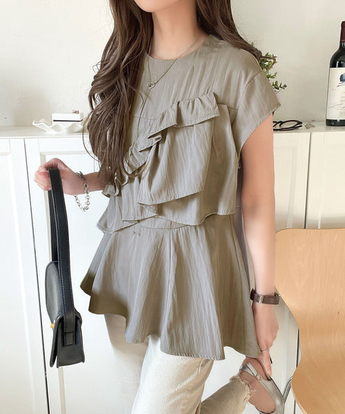 大人かわいい◎フリル使いフレアペプラムトップス(半袖) ce1240078