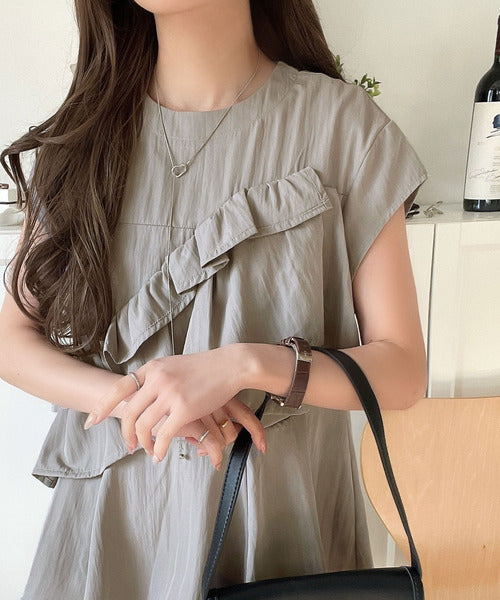 フロント側に大胆に入ったフリルとペプラムデザインが特徴の