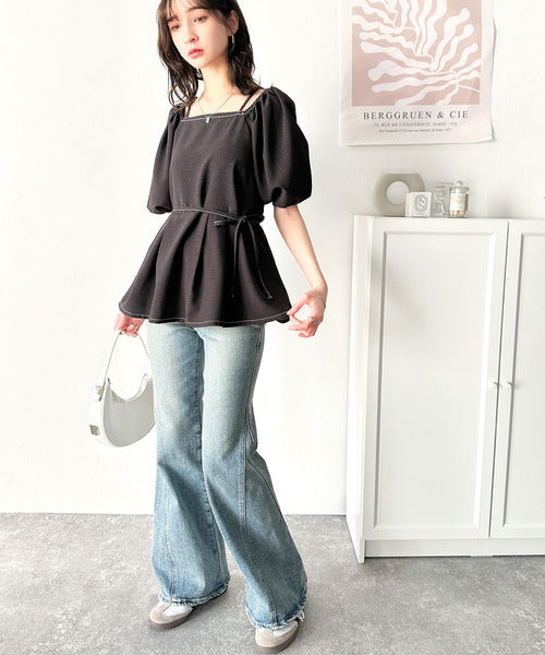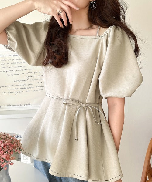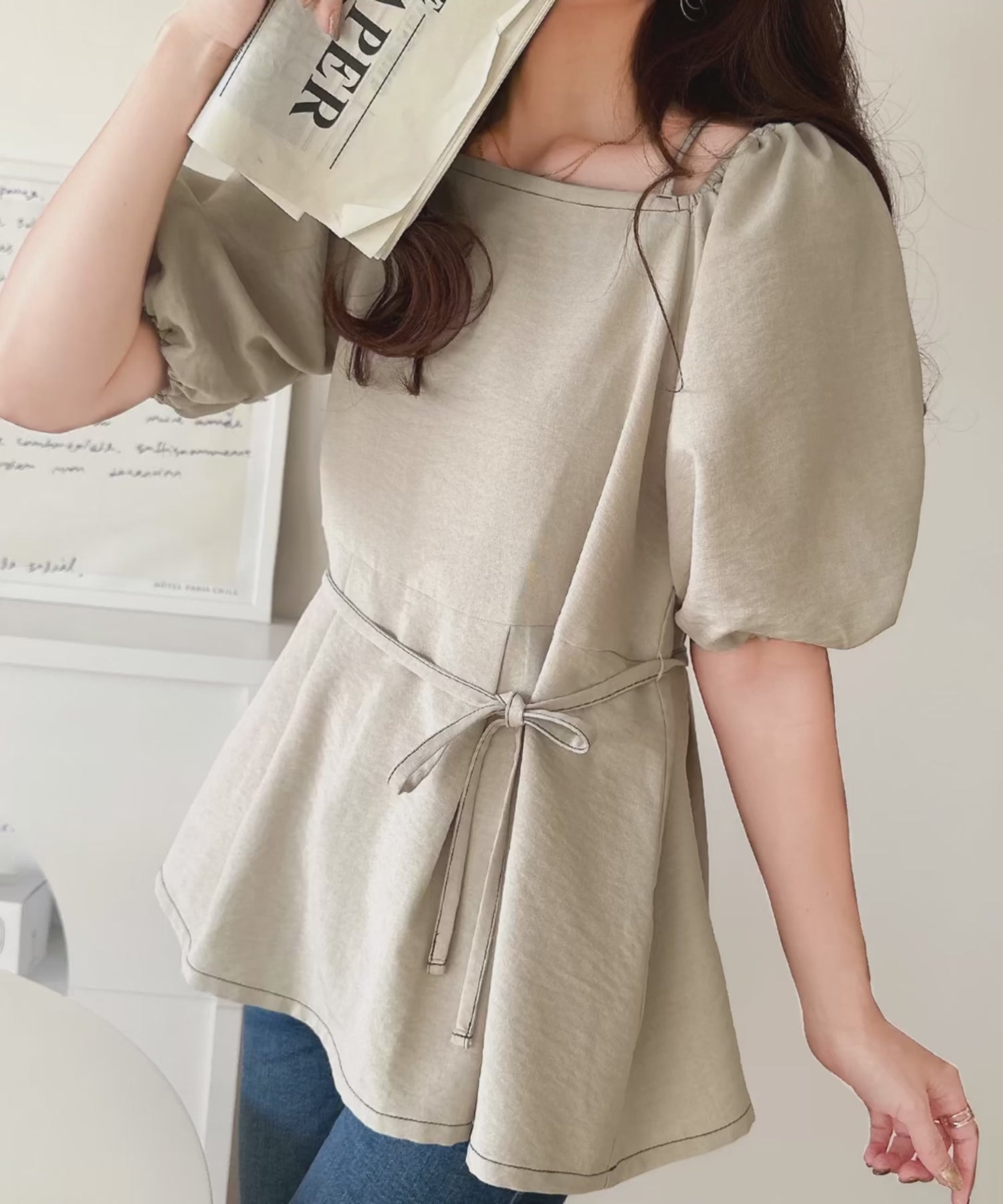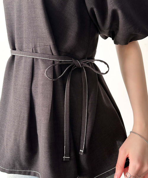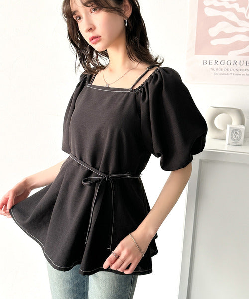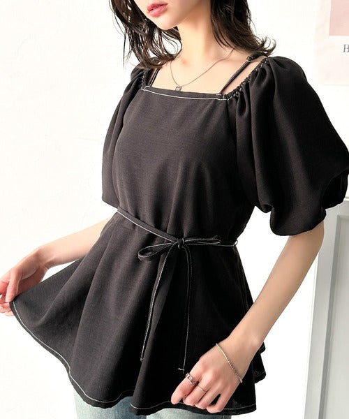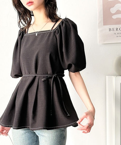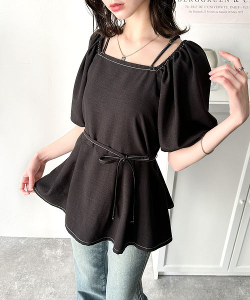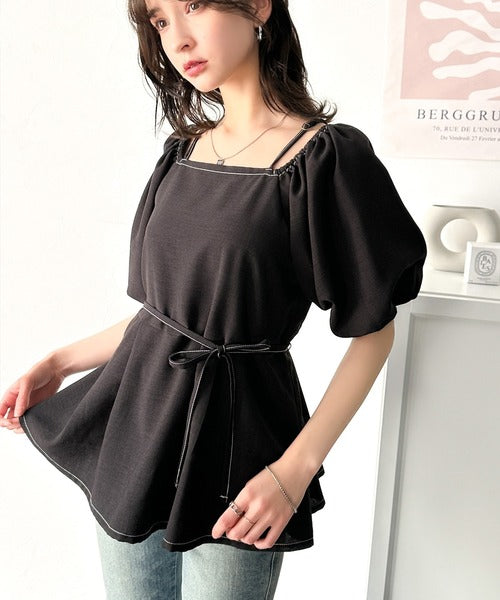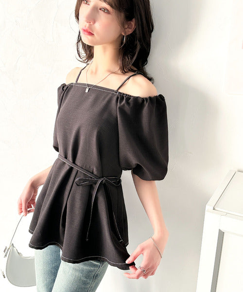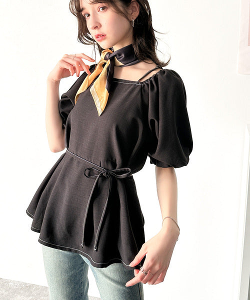 トレンド感たっぷり!2way配色ステッチペプラムブラウス(半袖) ce1260387