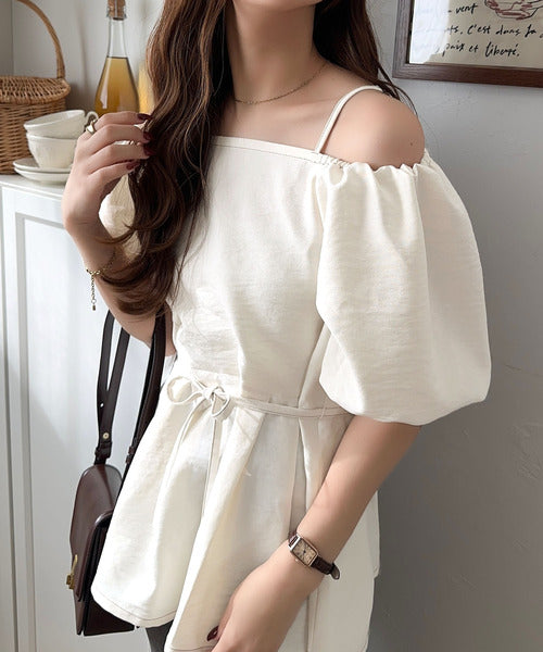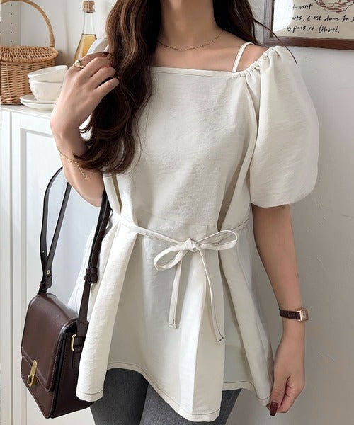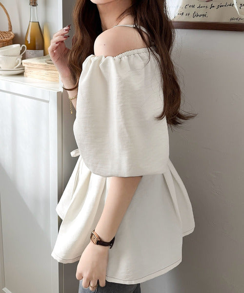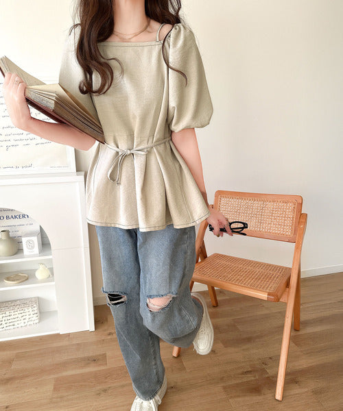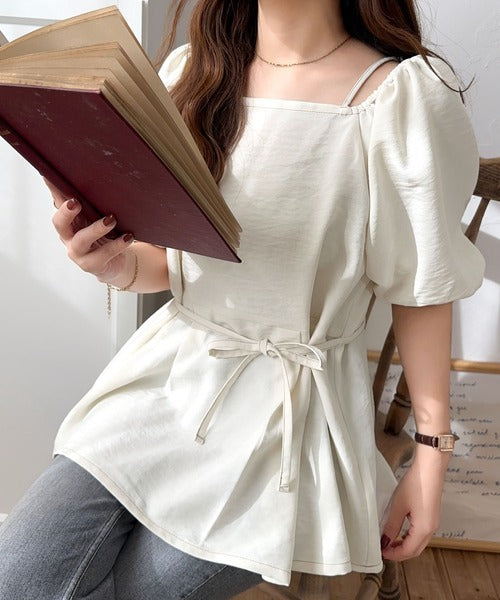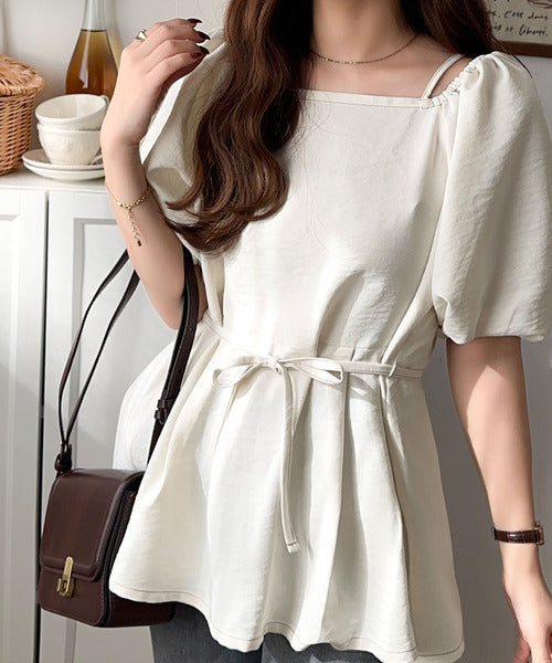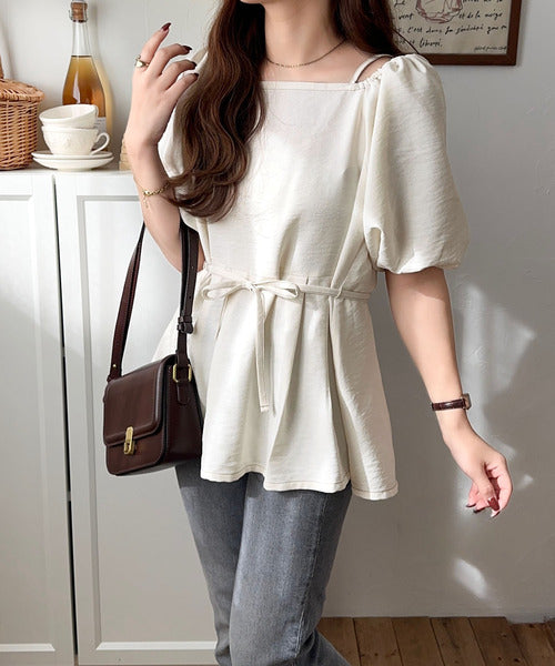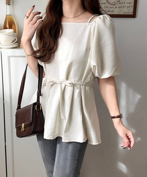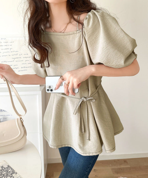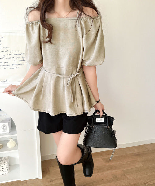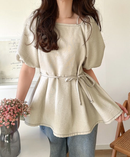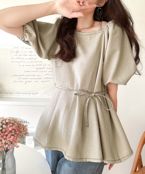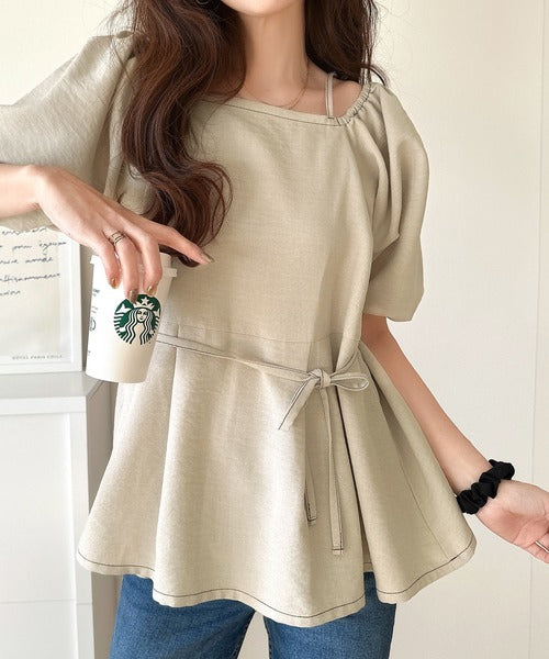 トレンド感たっぷり!2way配色ステッチペプラムブラウス(半袖) ce1260387