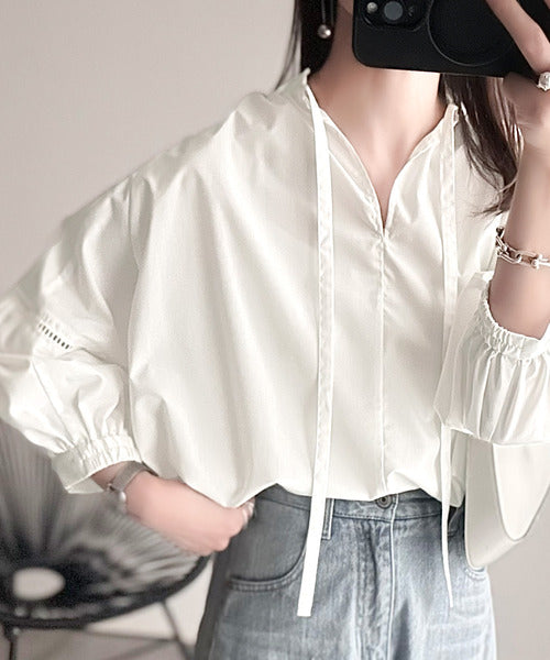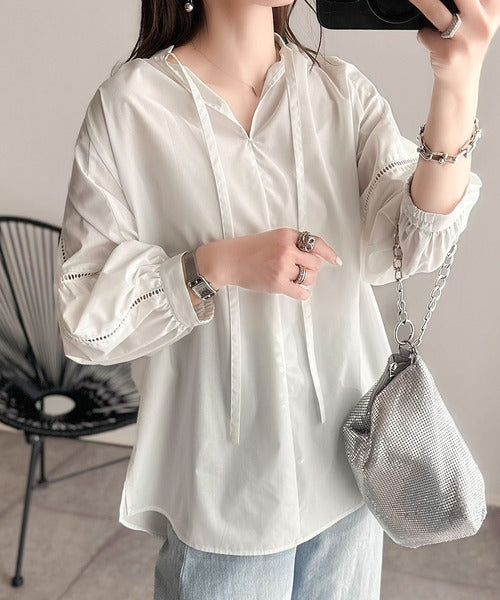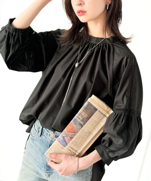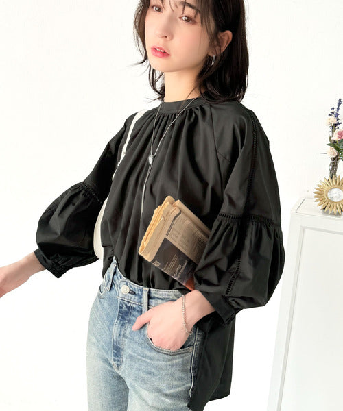 洗練フェミニン♪前後2wayハシゴレース使いボリュームスリーブブラウス(長袖) ce1300014