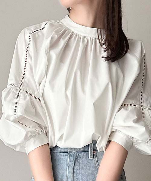 トレンド感のあるボリューム袖とレースのディテールが特徴の