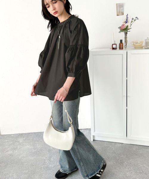 ボリューム袖はミニボトムスに合わせた時も華やかになります。