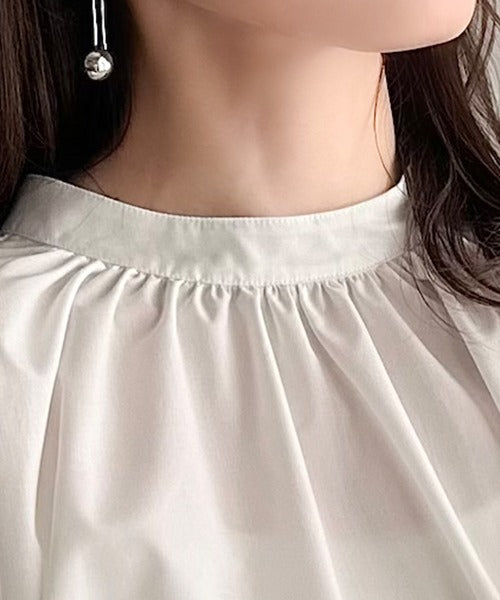 レース切替+ギャザー寄せで膨らみ感を演出。