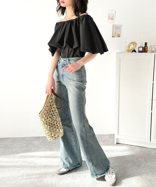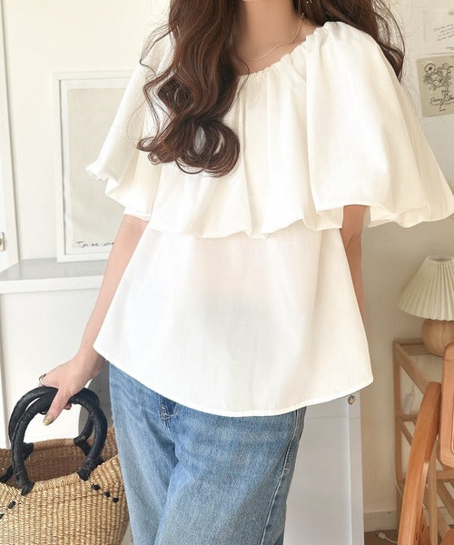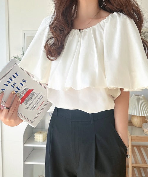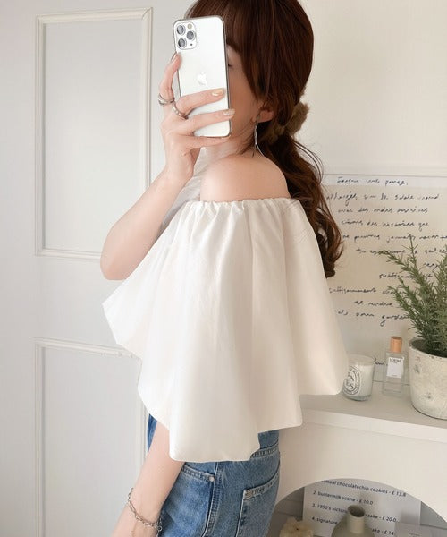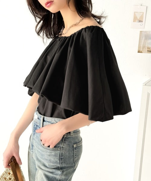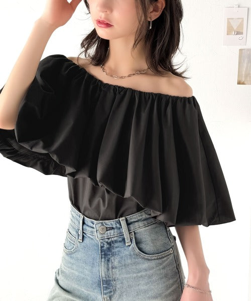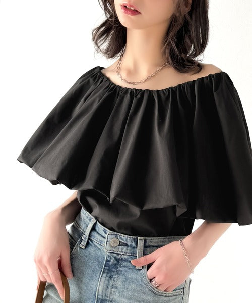 オフショルダーでも着用可能な2WAYデザインのブラウス。