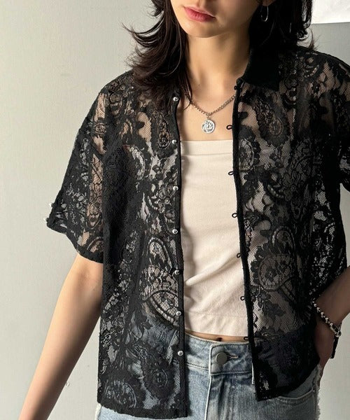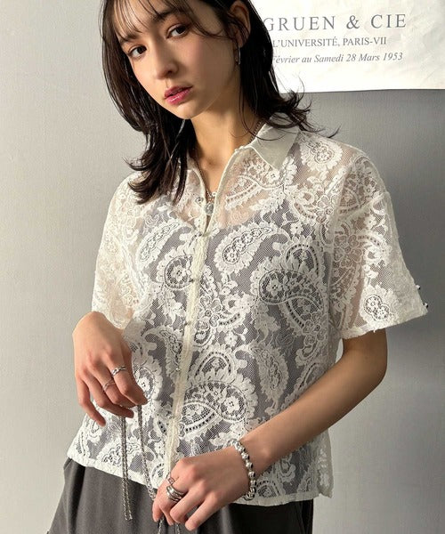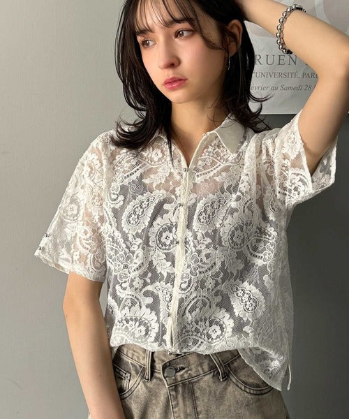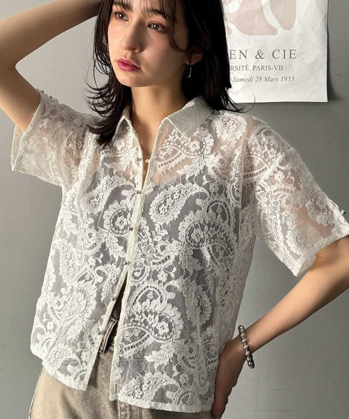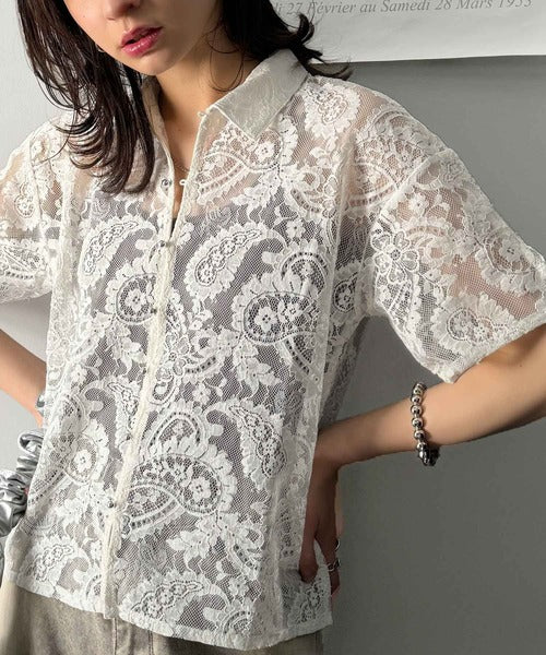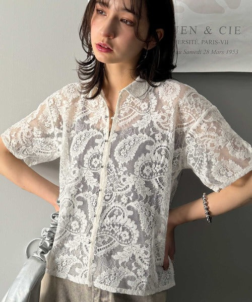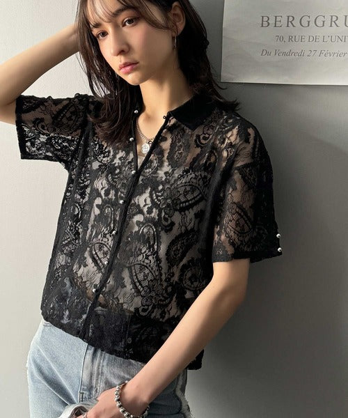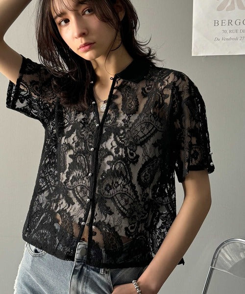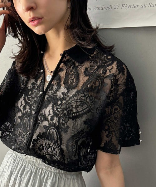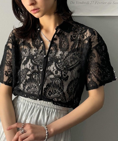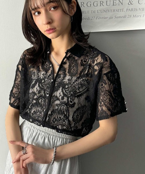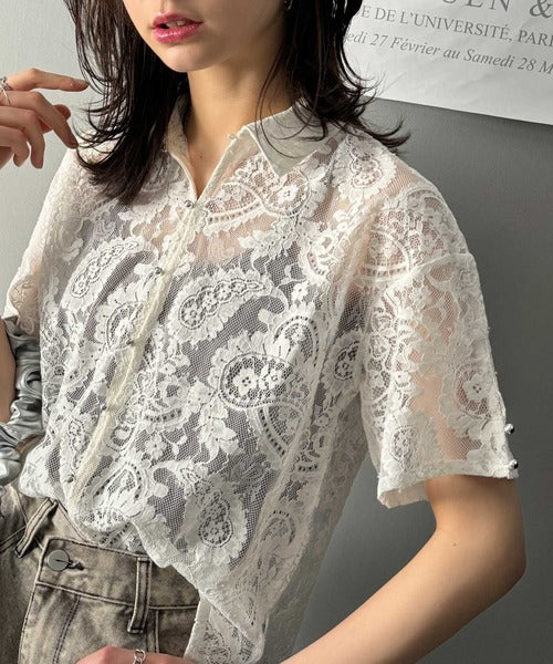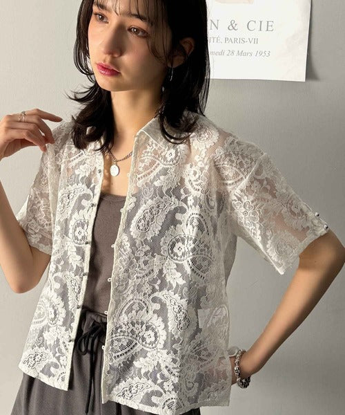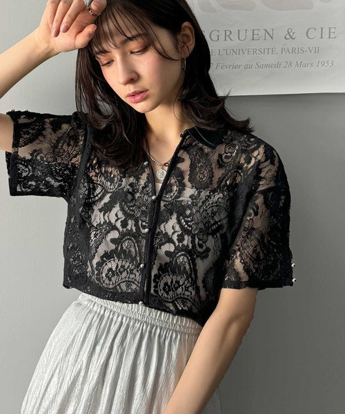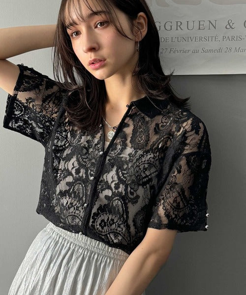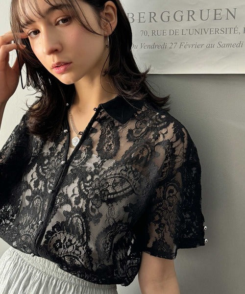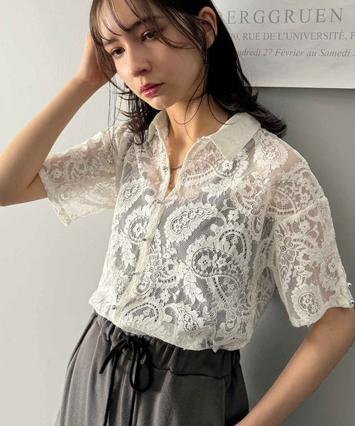 程よい透け感が大人可愛いレースシャツ。
