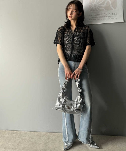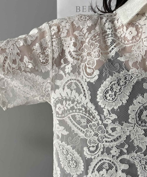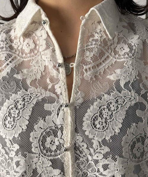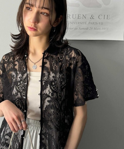 【mily bilet】フェミニンと洗練を纏う。メタルボタンコンパクトレースシャツ mi1019089
