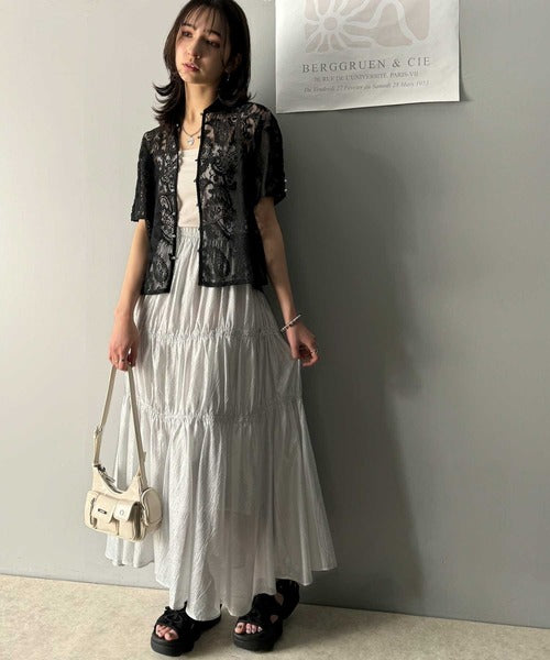甘めな雰囲気を楽しみたい時には、チュールスカートやシアースカートと合わせるがおすすめ。