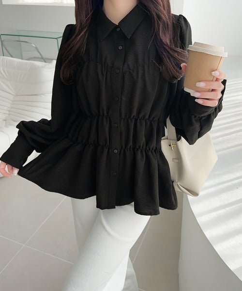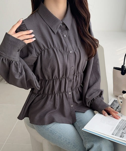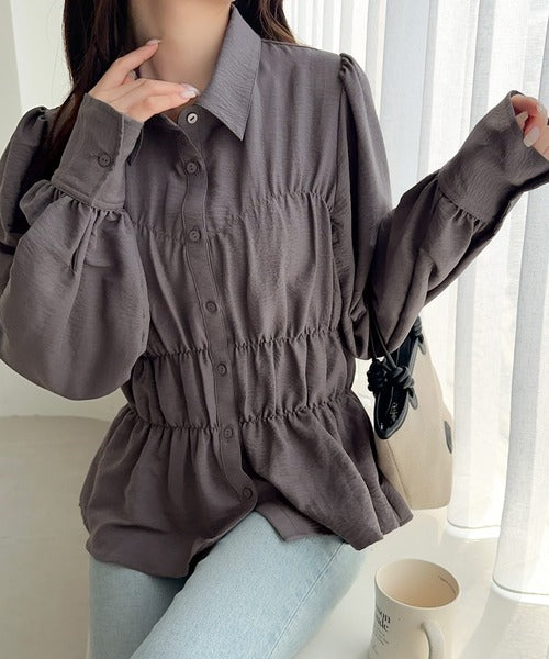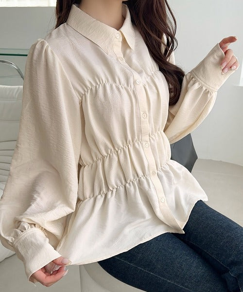 1枚で大人の甘さを引き出すシャーリングブラウス。