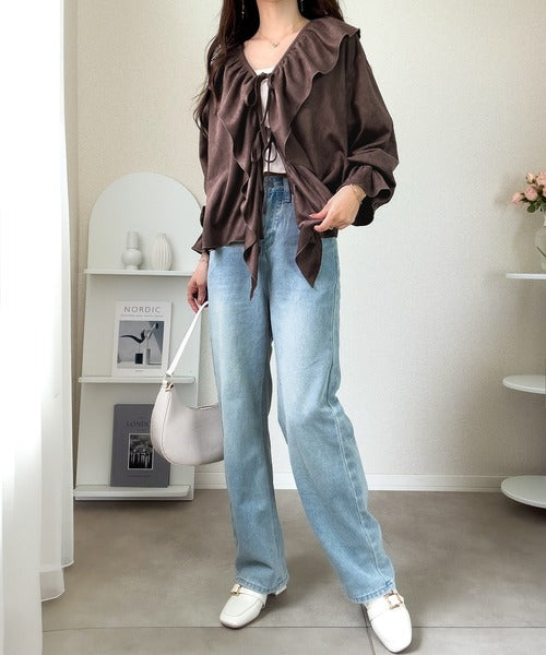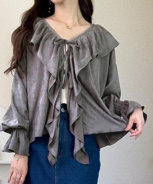 【mily bilet】ひらりと可憐に、上品フェミニン。フェイクスエード前開きリボンブラウス(長袖) mi1019110