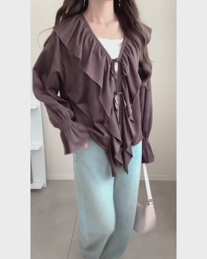 ひらりと揺れるラッフルとリボンが大人可愛いブラウス♪