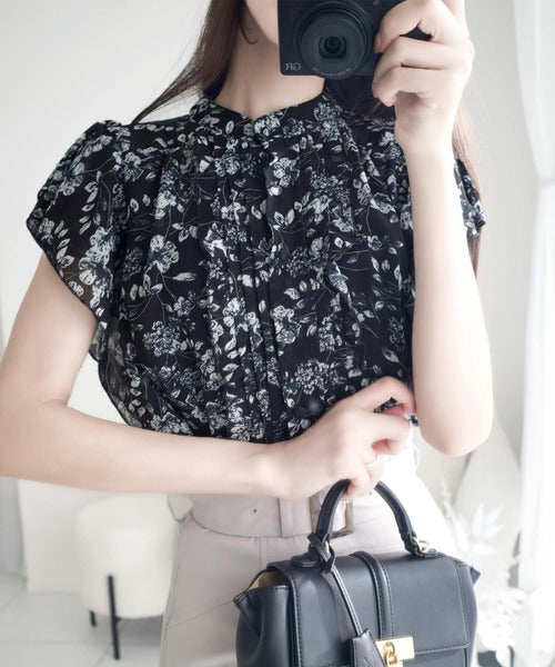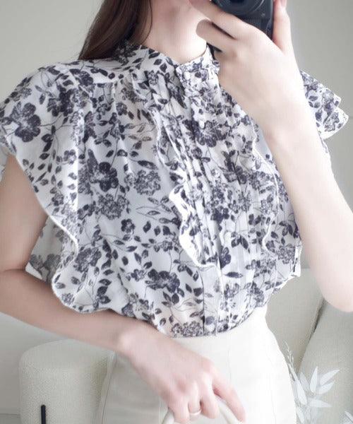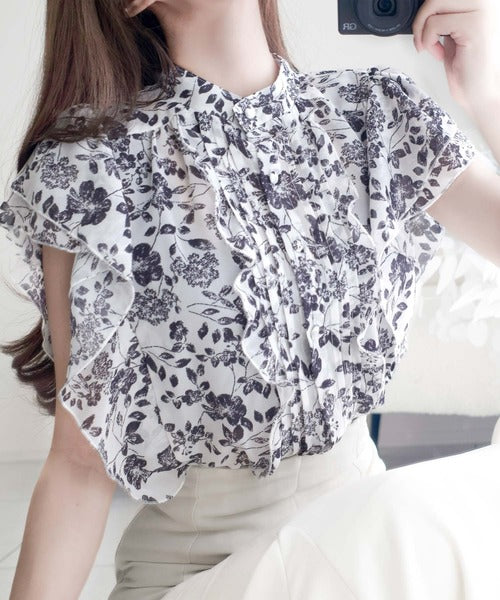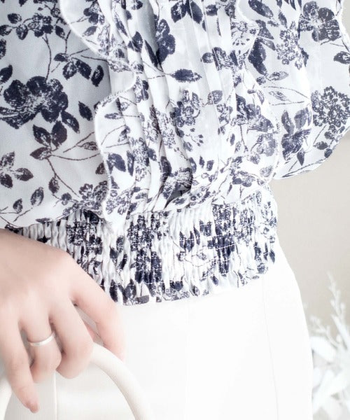 大人ガーリーなスタイルを楽しめる花柄ブラウス