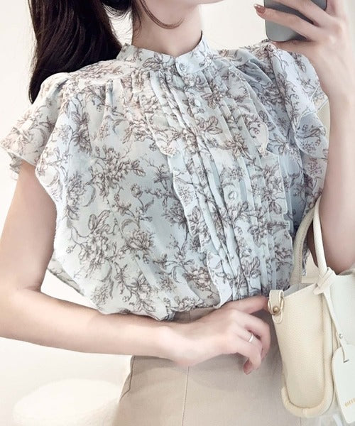 清涼感のあるシフォン素材に柔らかい配色の花柄プリントブラウス◎