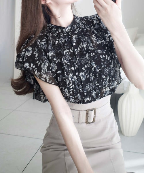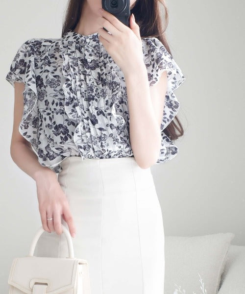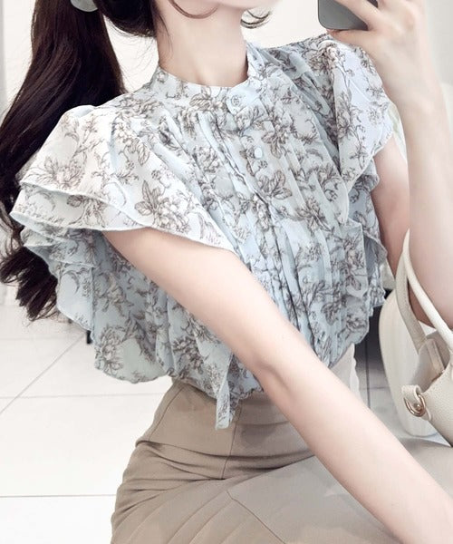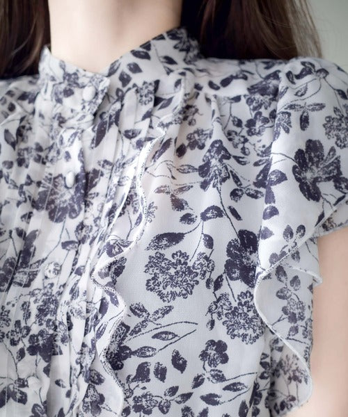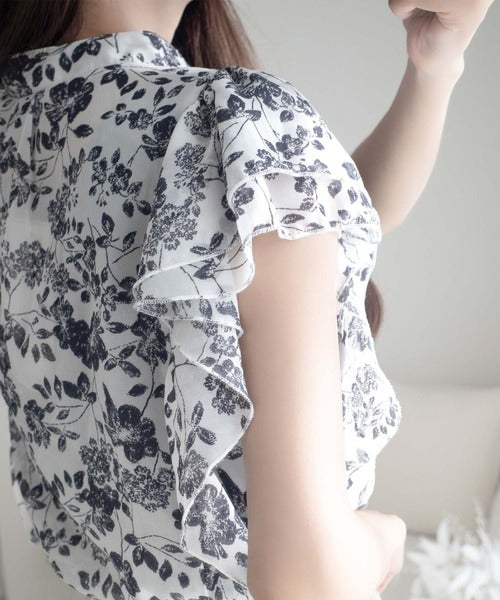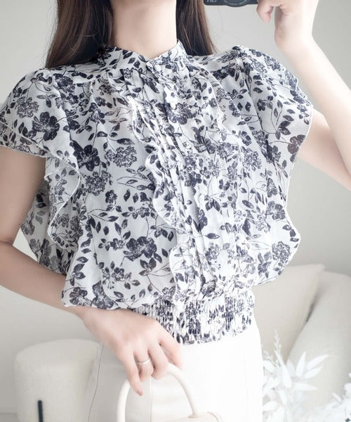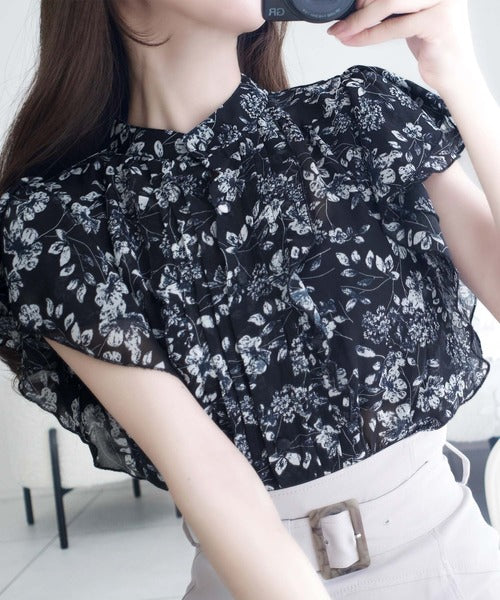 【mily bilet】上品レディライク♪花柄ダブルフリルシアー袖フレアブラウス mi1139062