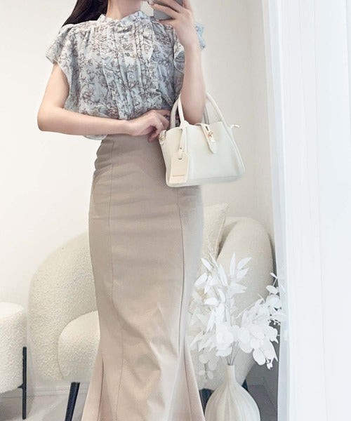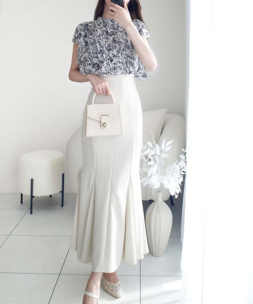 ボトムスはマーメイドスカートやフレアスカートで合わせて