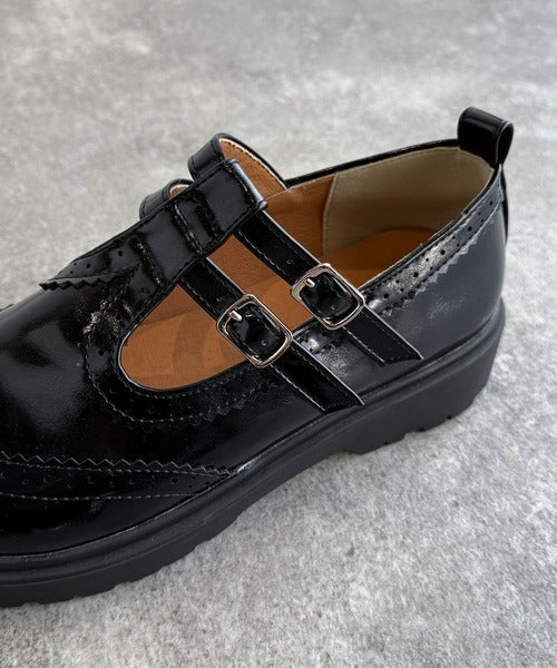 ・マニッシュデザイン+Tストラップで可愛さもプラス