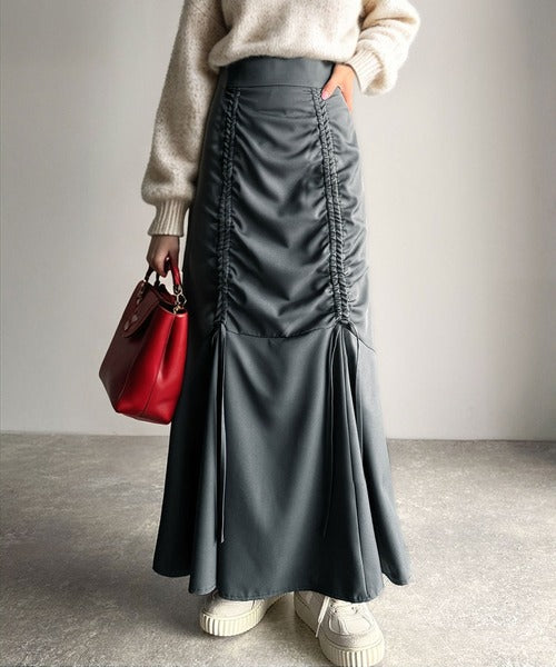 大人可愛い!愛され美ライン。シャーリングリボン使いマーメイドスカート(ロング丈) ce0940215