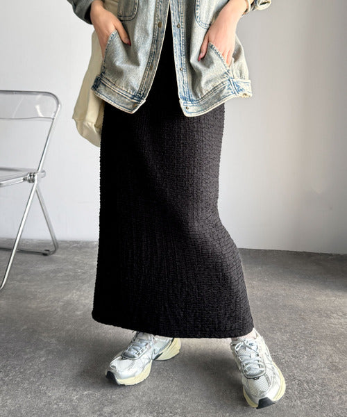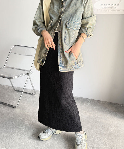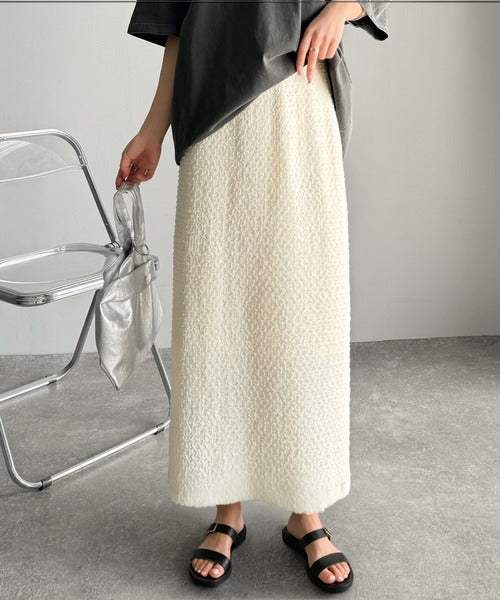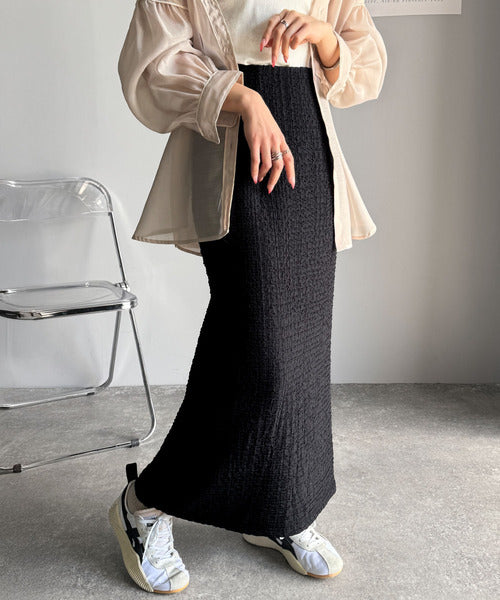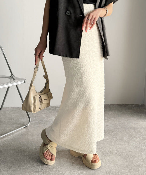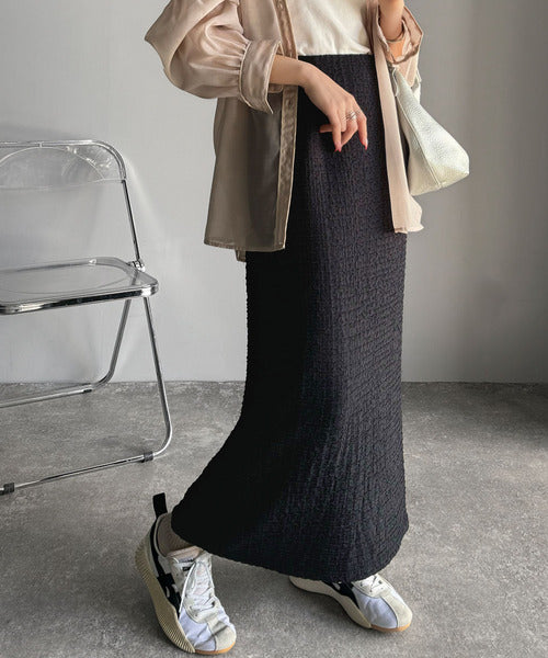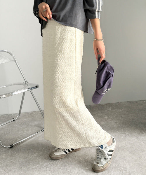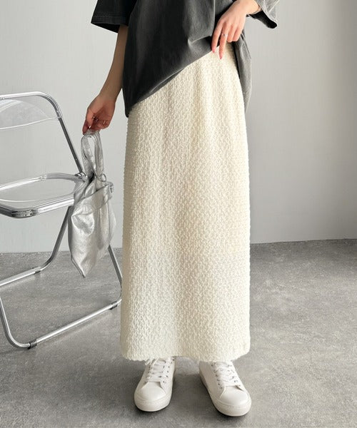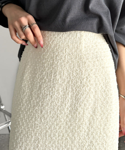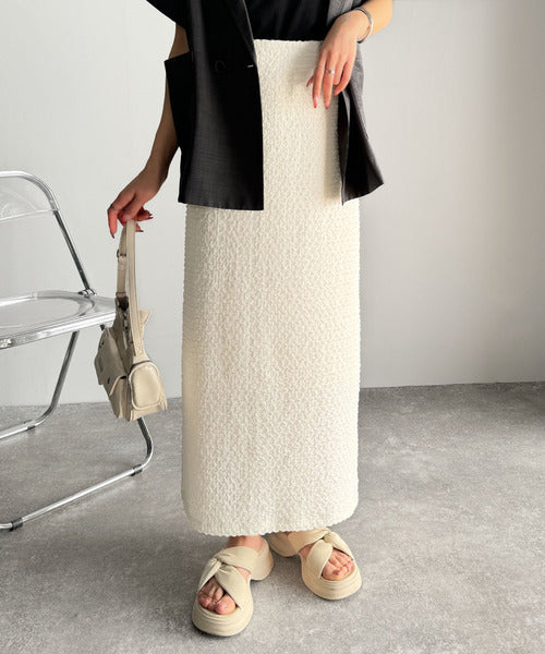 大人の女性を魅了する、ぽこぽこ素材のストレートスカート。