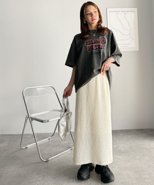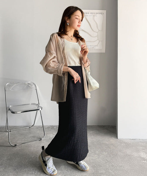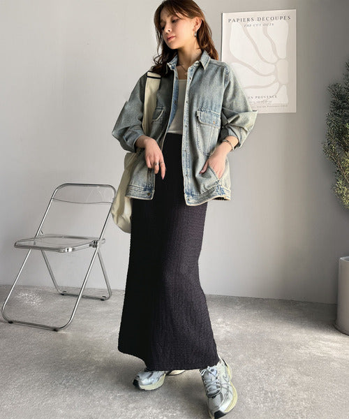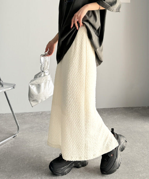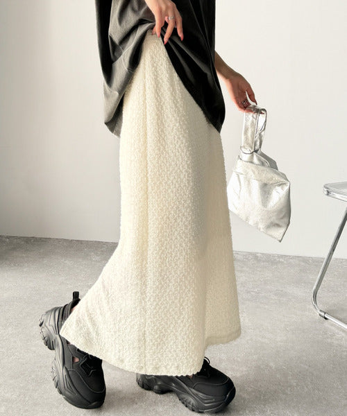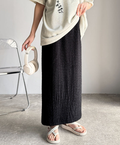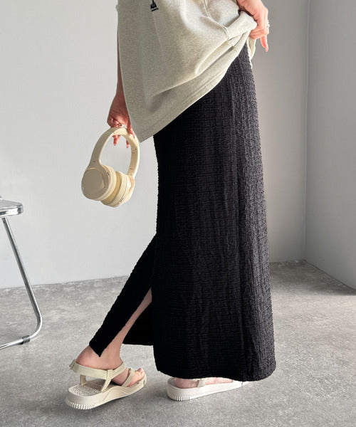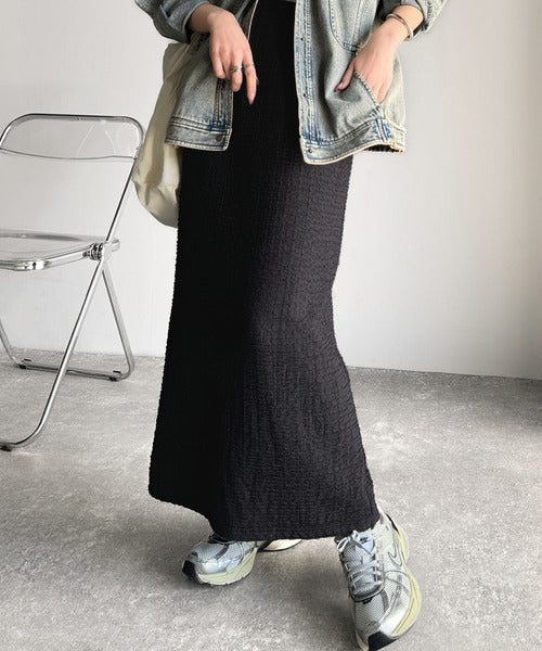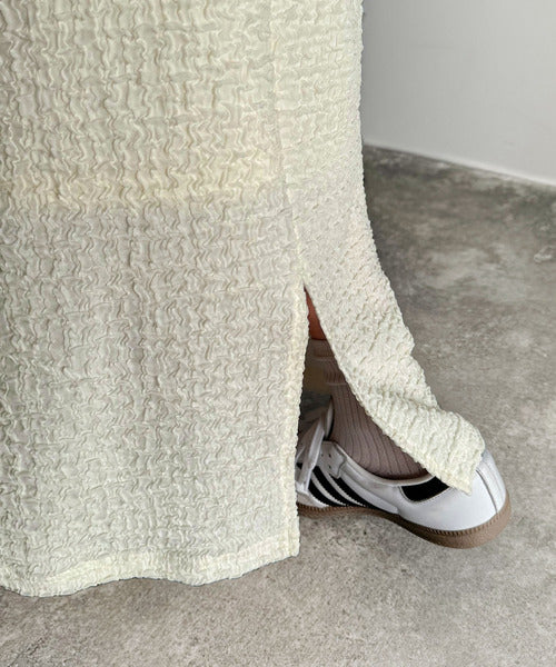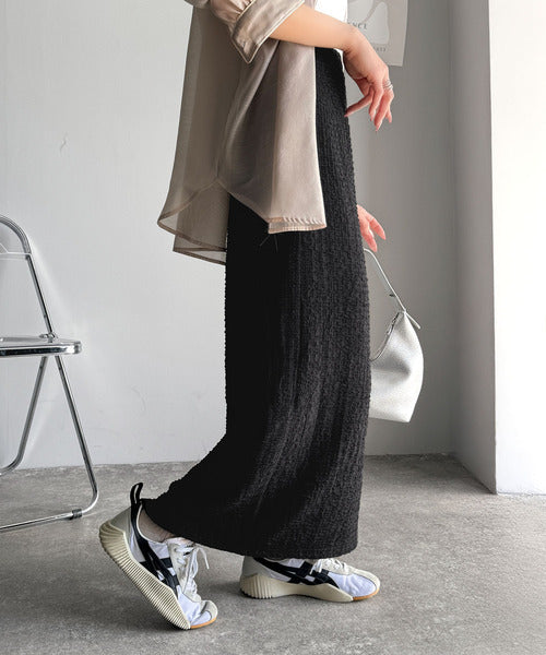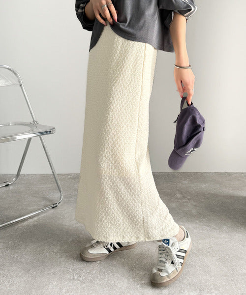 大人の女性を魅了する、ぽこぽこ素材のストレートスカート。