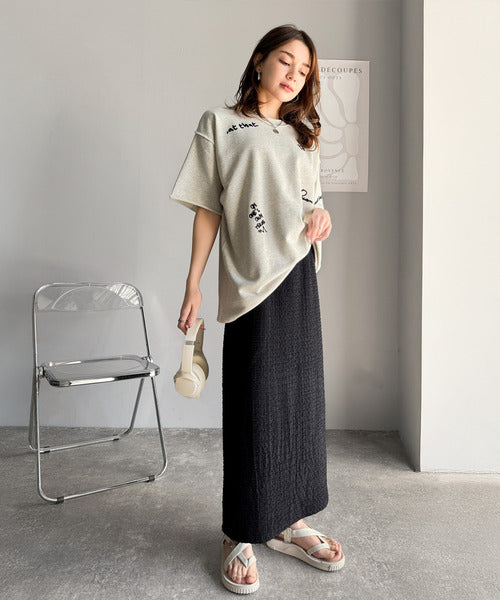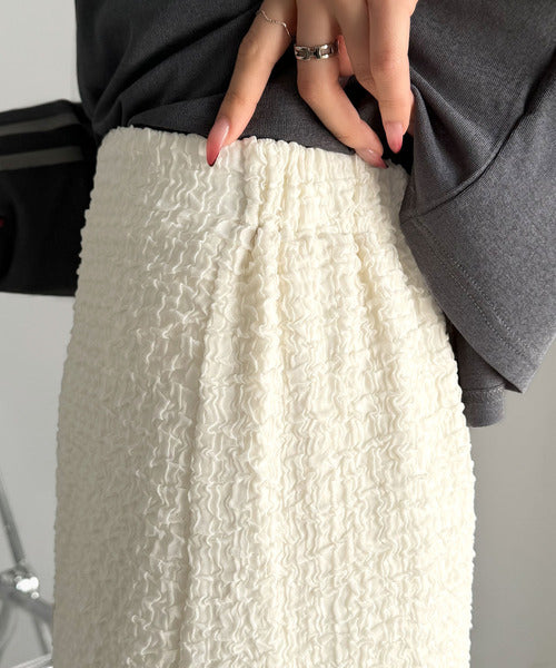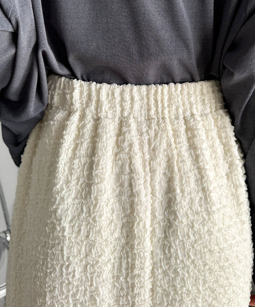 ぽこぽこ素材がかわいい♪シャーリングファブリックストレートスカート(後ろゴム) ce0940232